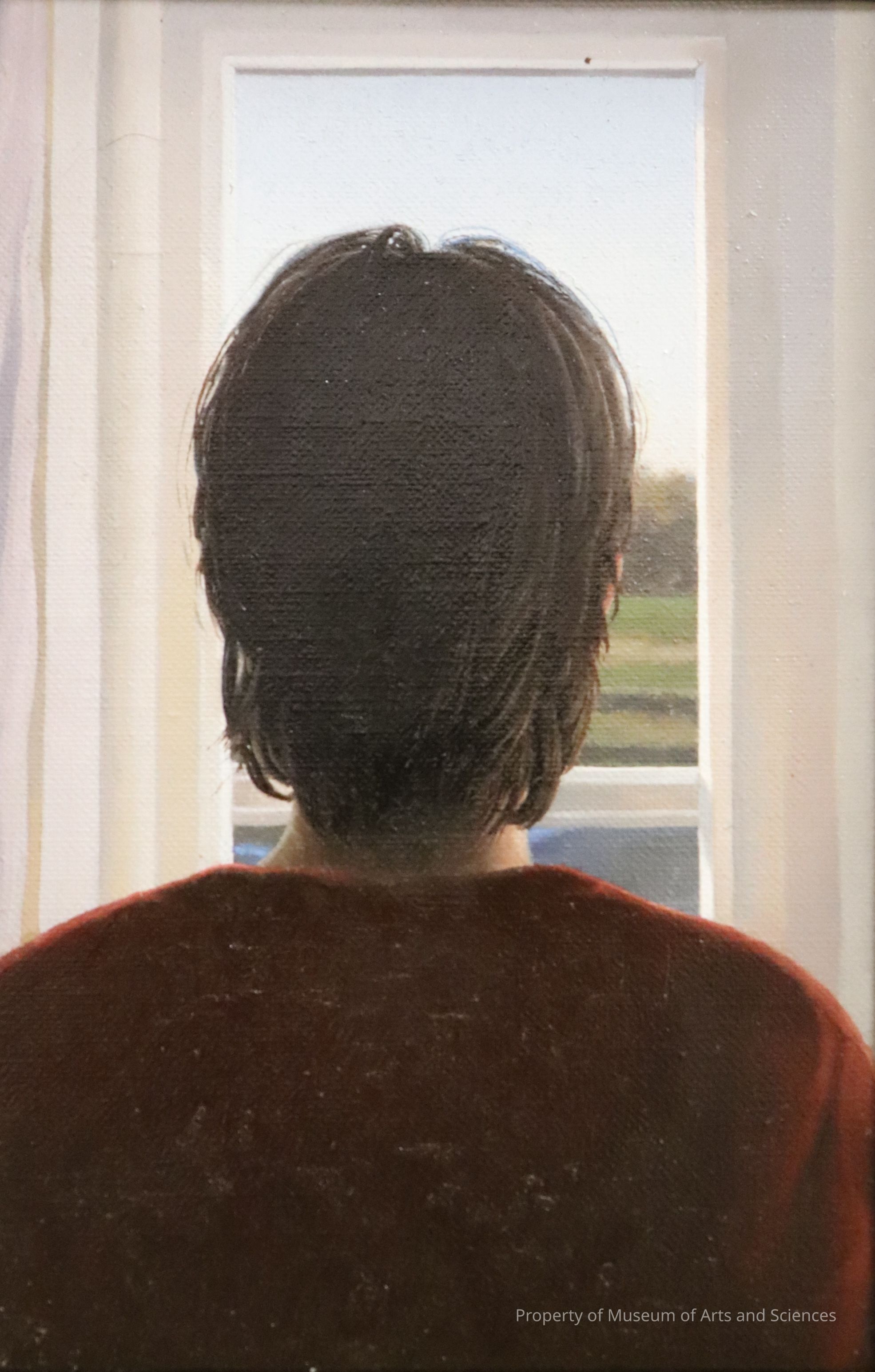 Interior. Female (view from behind, shoulders and head) looking out window.Artwork Details