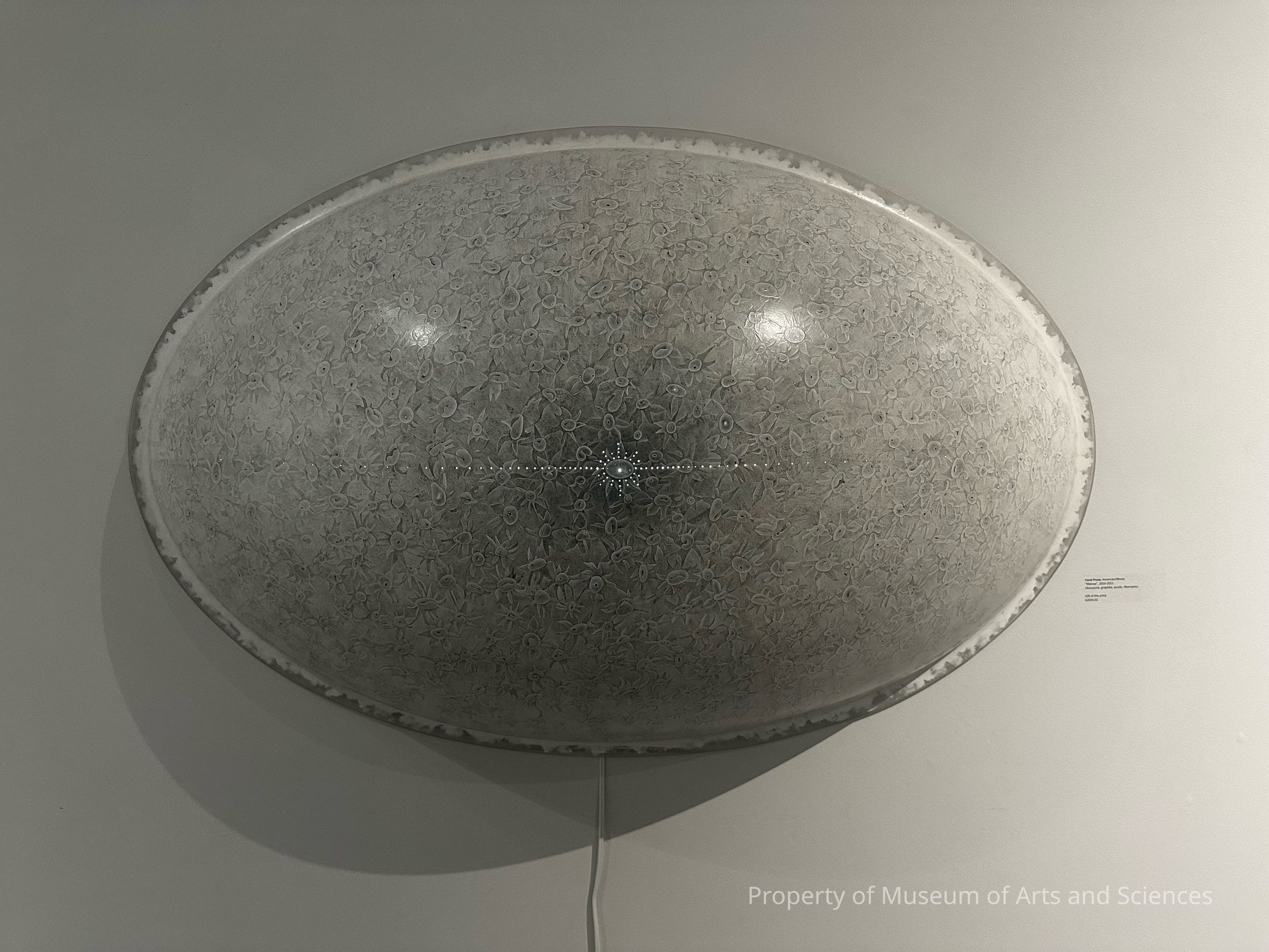 Silverpoint drawing, graphite washes, and acrylic on acrylic hemisphere-shaped form with fibre opticsCollection