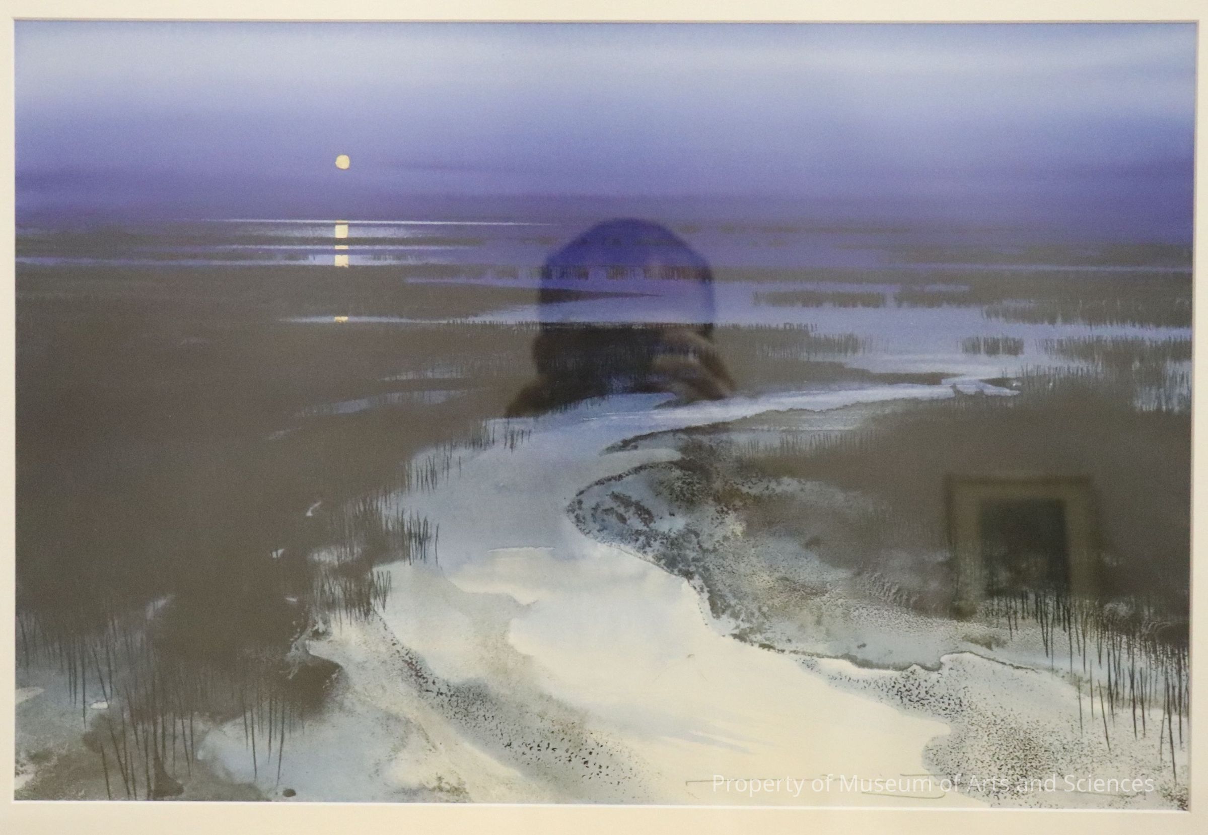 Wetland view. Marsh with sun on left, low on horizon.Artwork Details