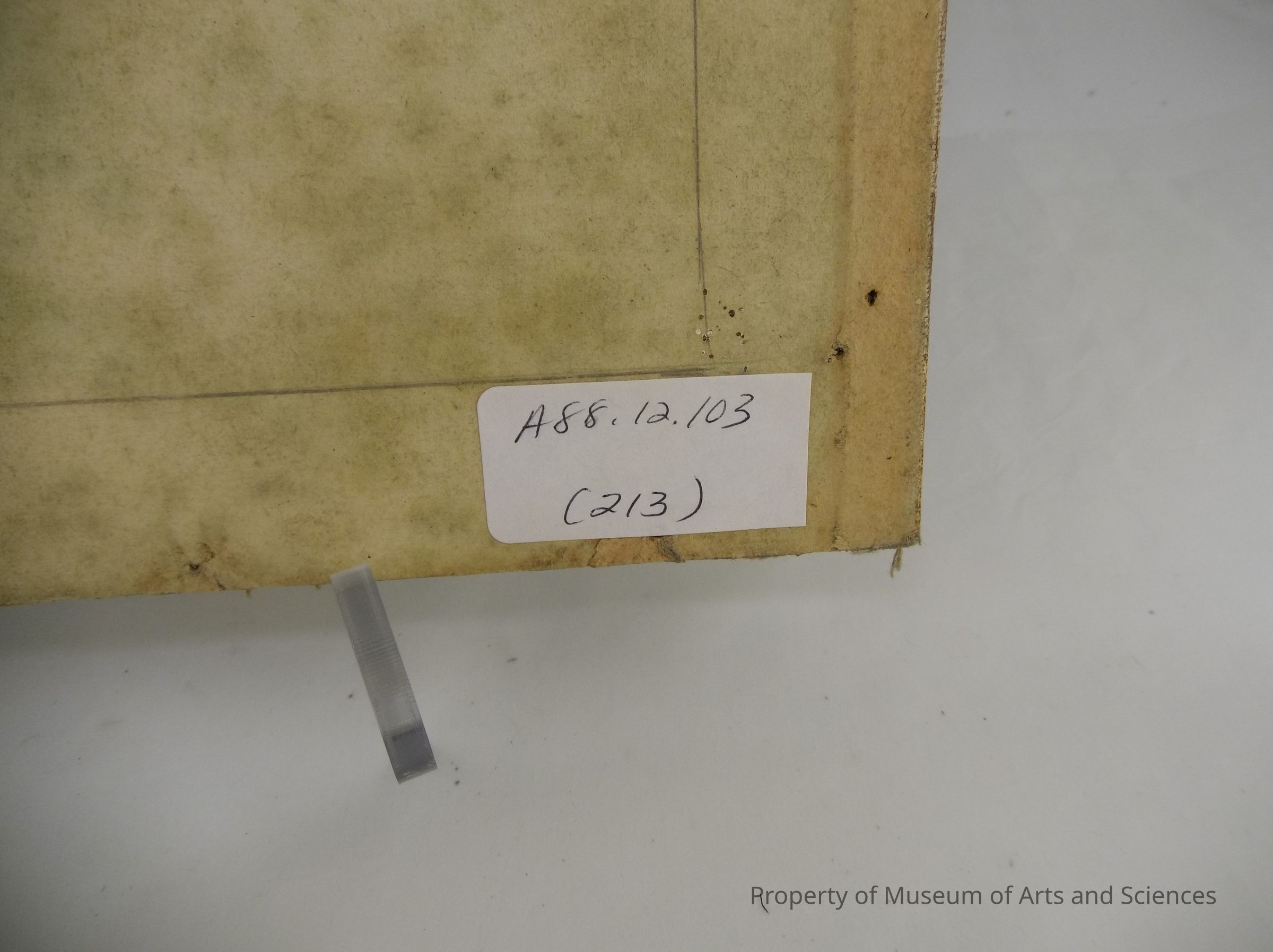 Blue gate opening on to a white classical house with swaying pala? trees feaming (?) the compostion.Artwork Details
