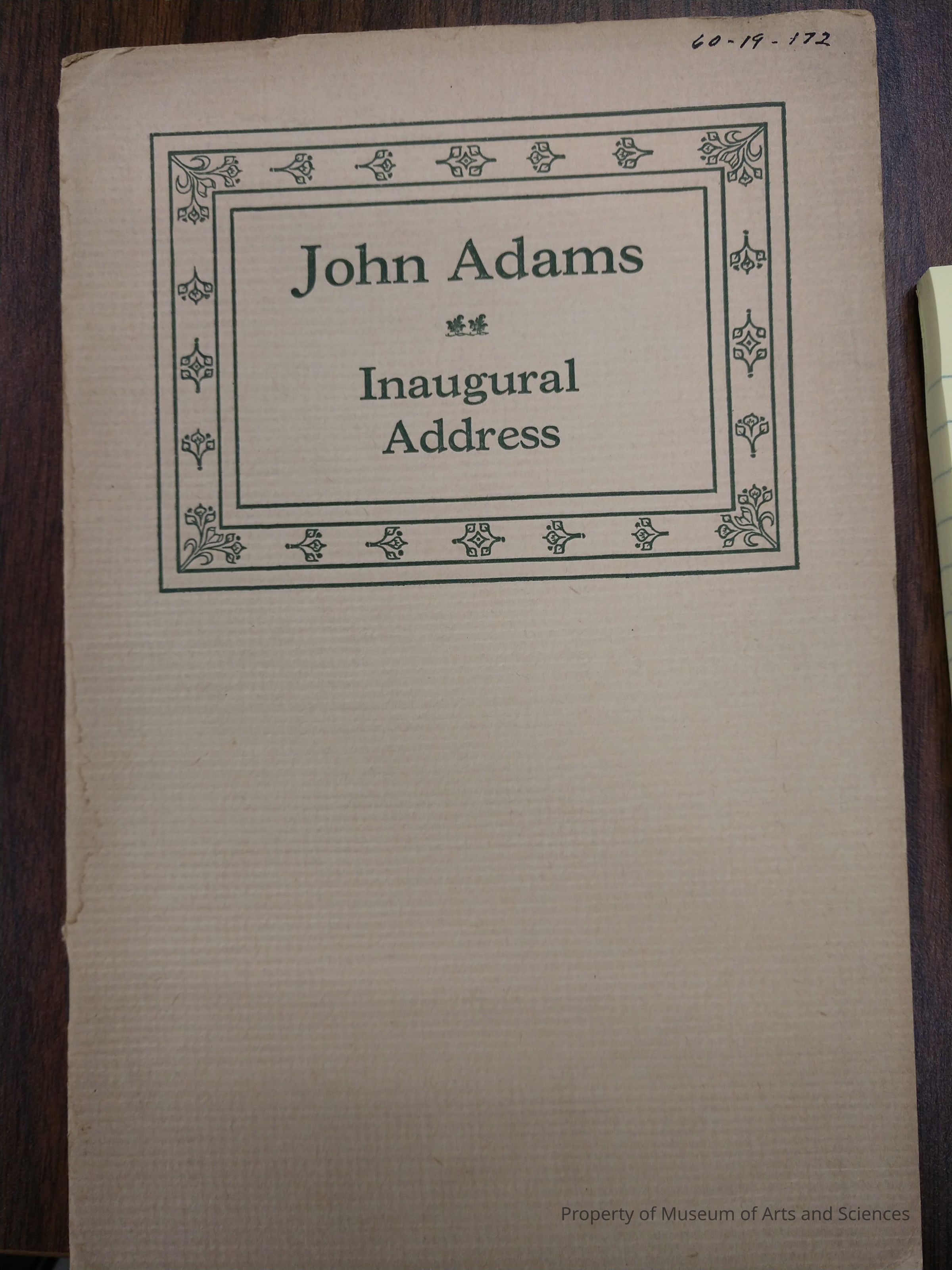 Pamphlet: John Adams Inaugural AddressEntry/Object ID