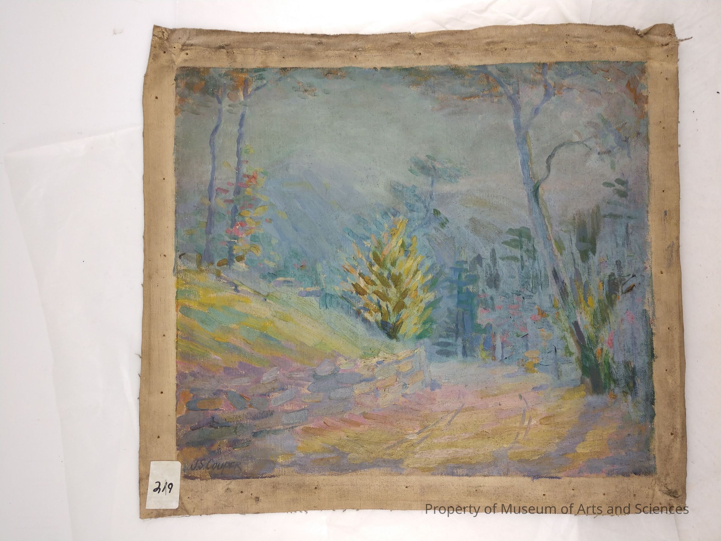 Pool in cypress swamp with central bank of blooming flowers.Collection