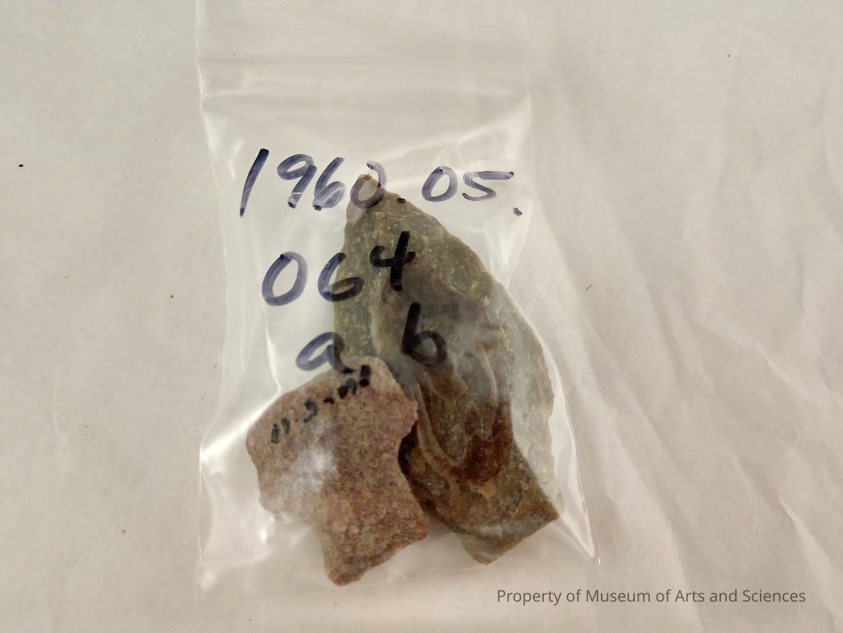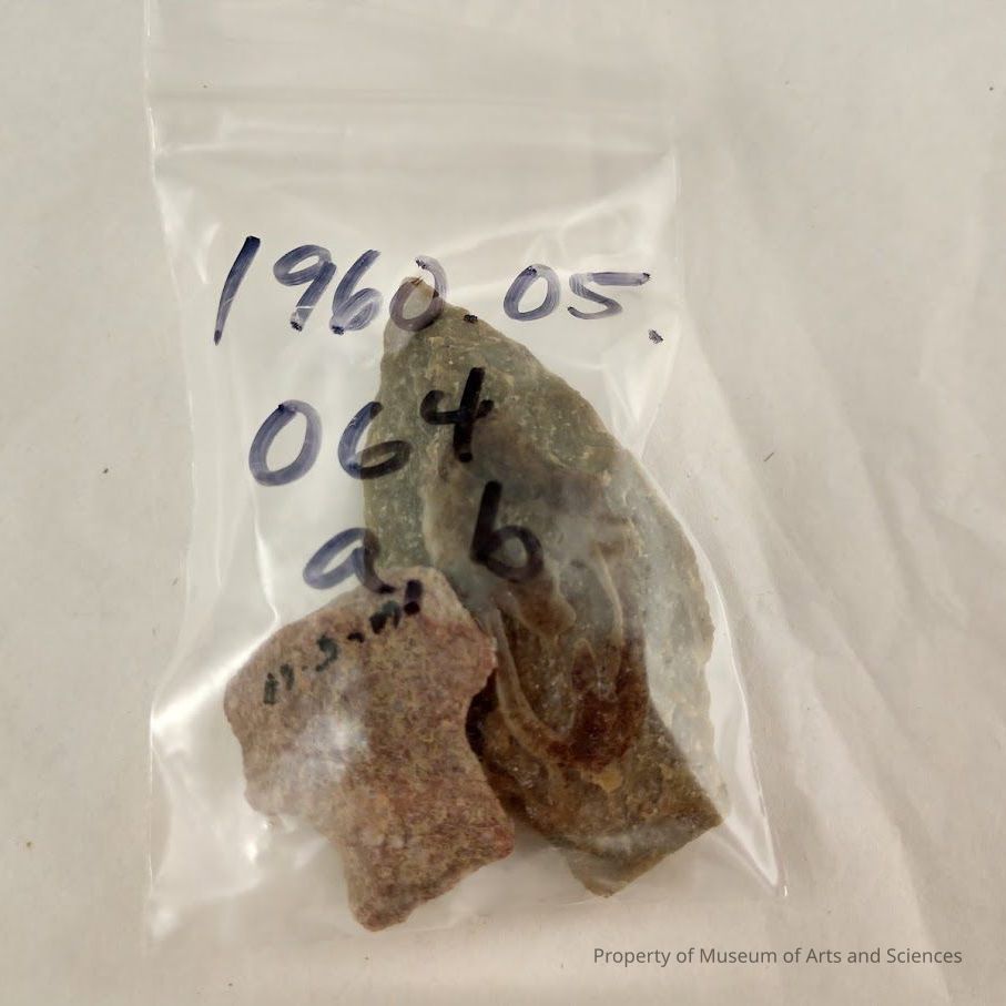 Ryolite (1) Partial projectile point with 1/2 body and point missing. Stem intact