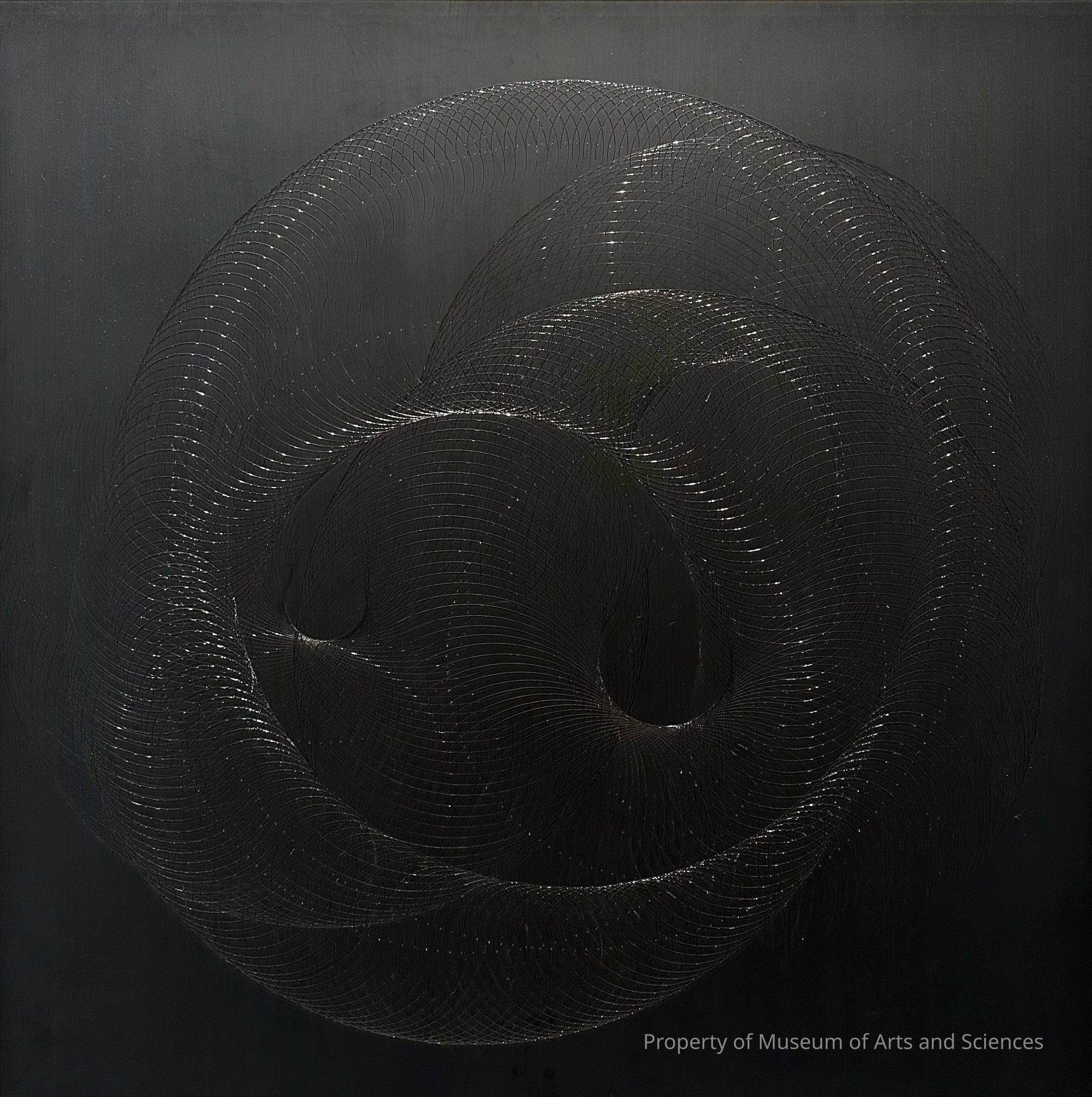 Hand-incised plastic and acrylic on panel