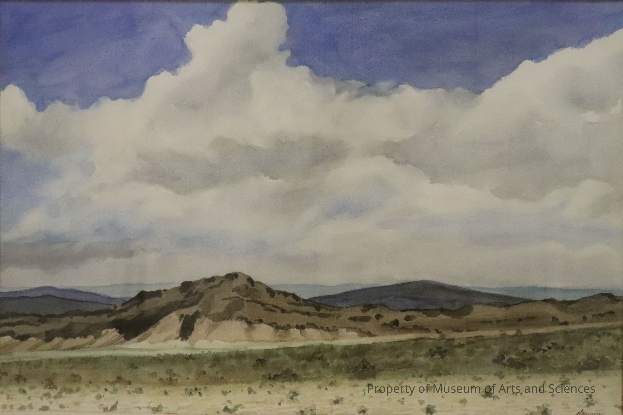 Western landscape. Dry near desolate earth in foreground. Distant mountains.Artwork Details