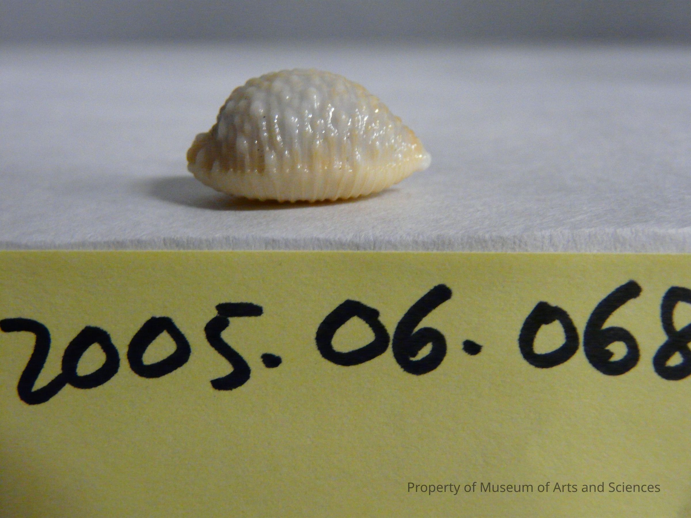 The upper surface of this shell bears many small nodules and a midline crease.