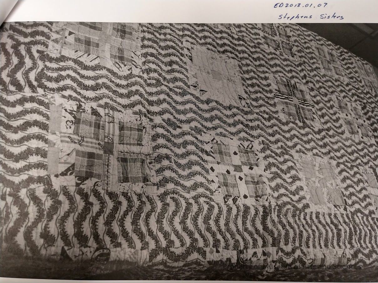 Stephens Sisters four patch variation quilt with black and white calico borders
