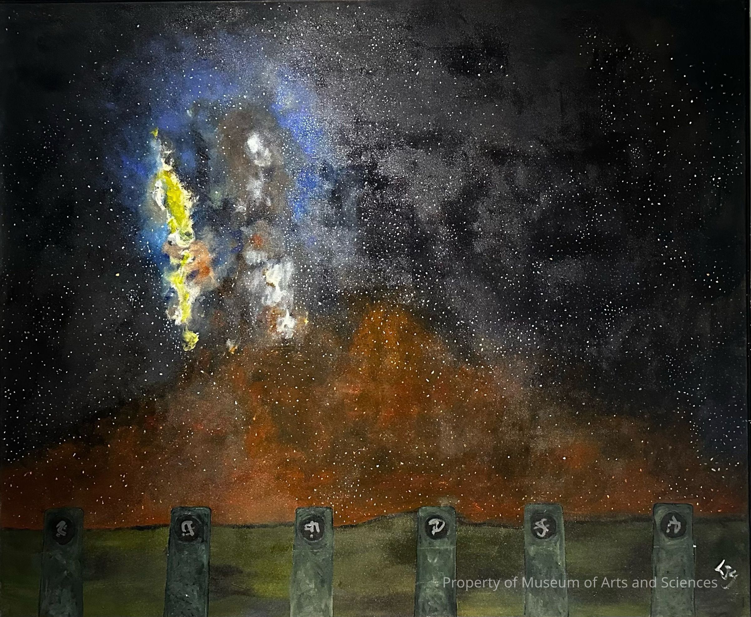 This painting, from a body og work inspired by the comos, was included in a solo exhibition at the Macon Art AllianceCollection