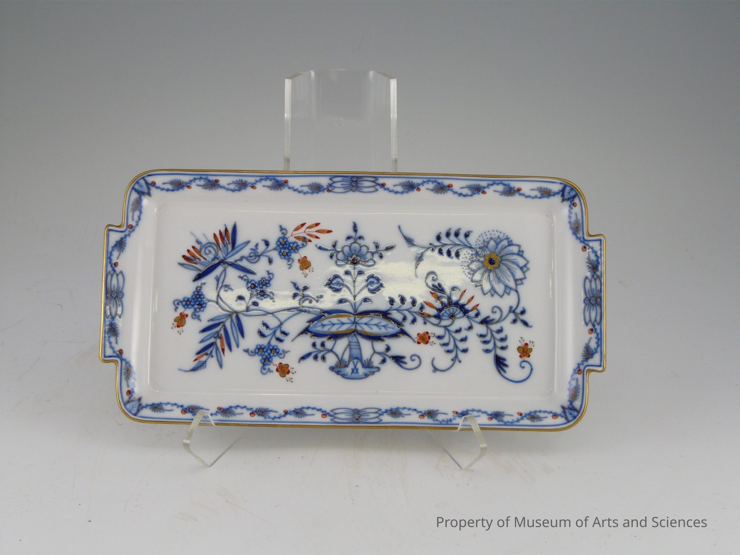20th century Meissen porcelain tray, blue with floral design
