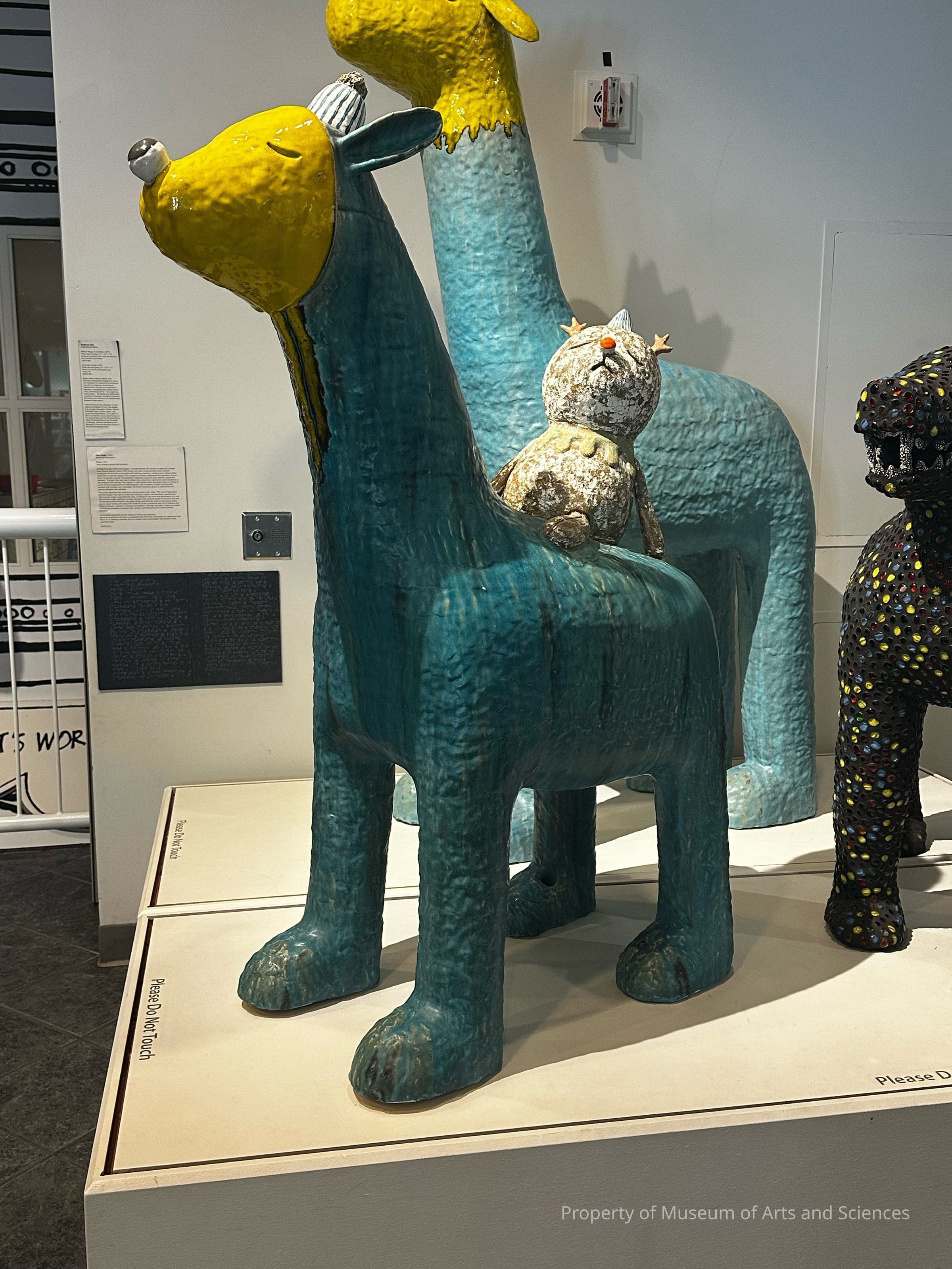 Four legged animal like figure with second figure ridding its back. Fired clay and glaze.Artwork Details