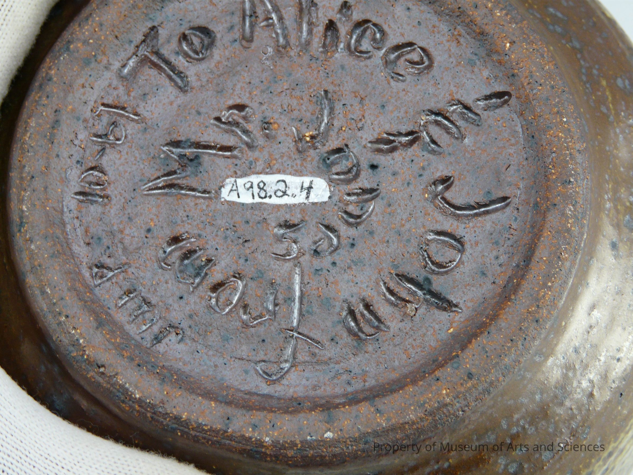 Glazed Stoneware surface incised with a script like designCollection