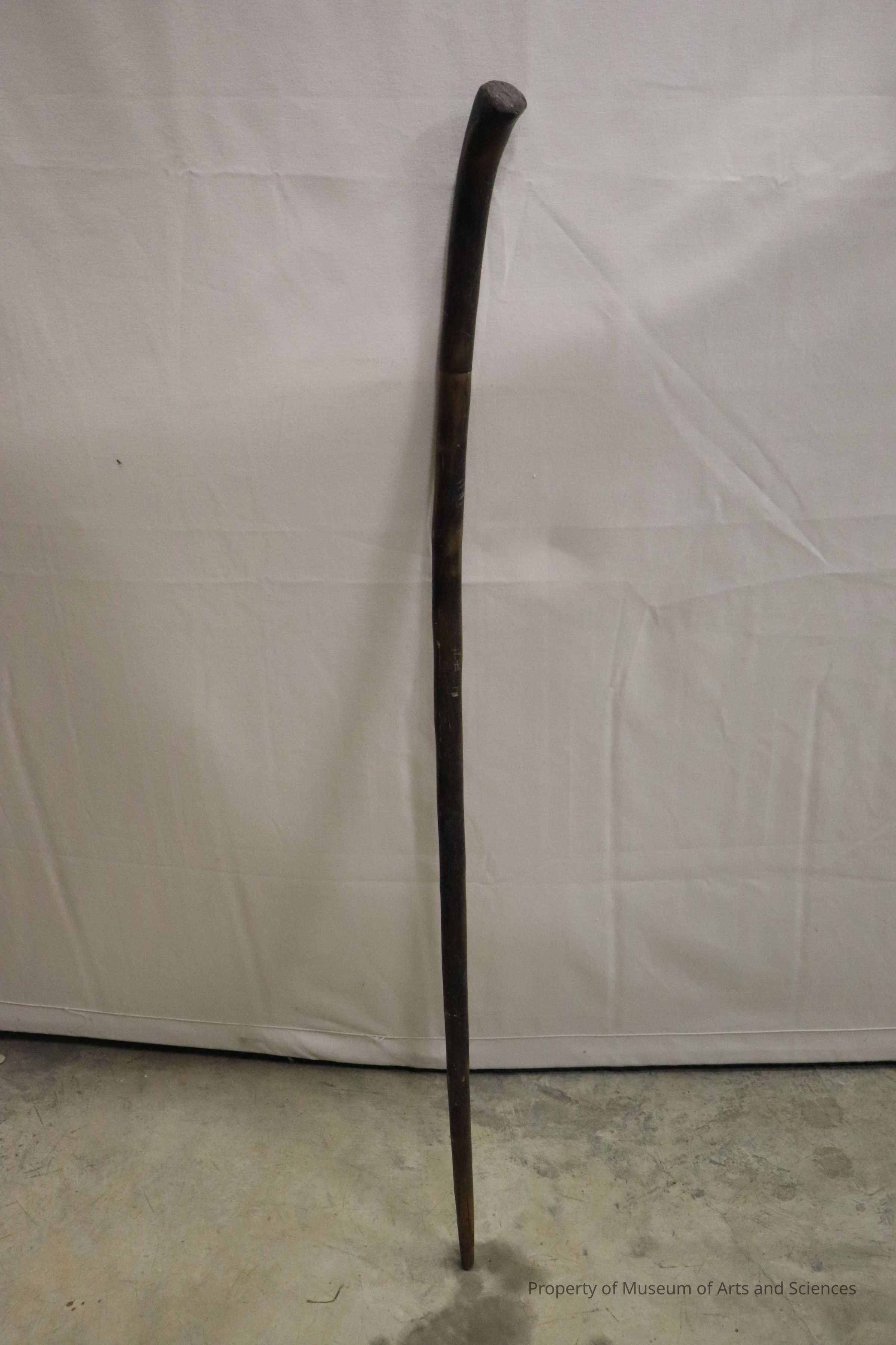 Dark wooden cane. Slightly curved.