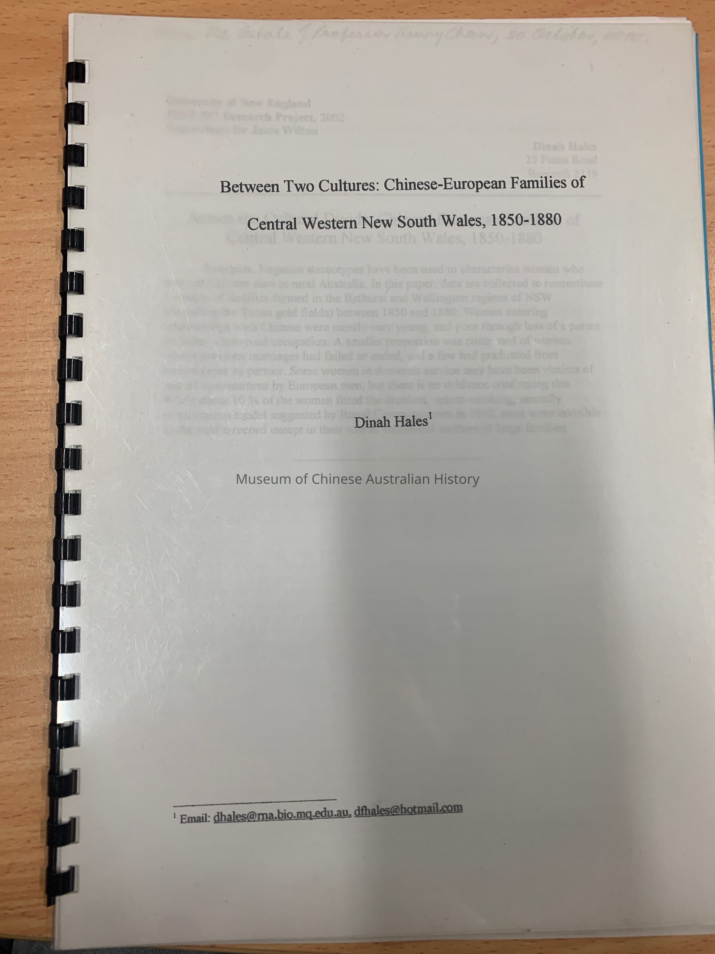 University of New England, History 397 Research Project, 2002. From the Estate of Professor Henry Chan, October 2015.