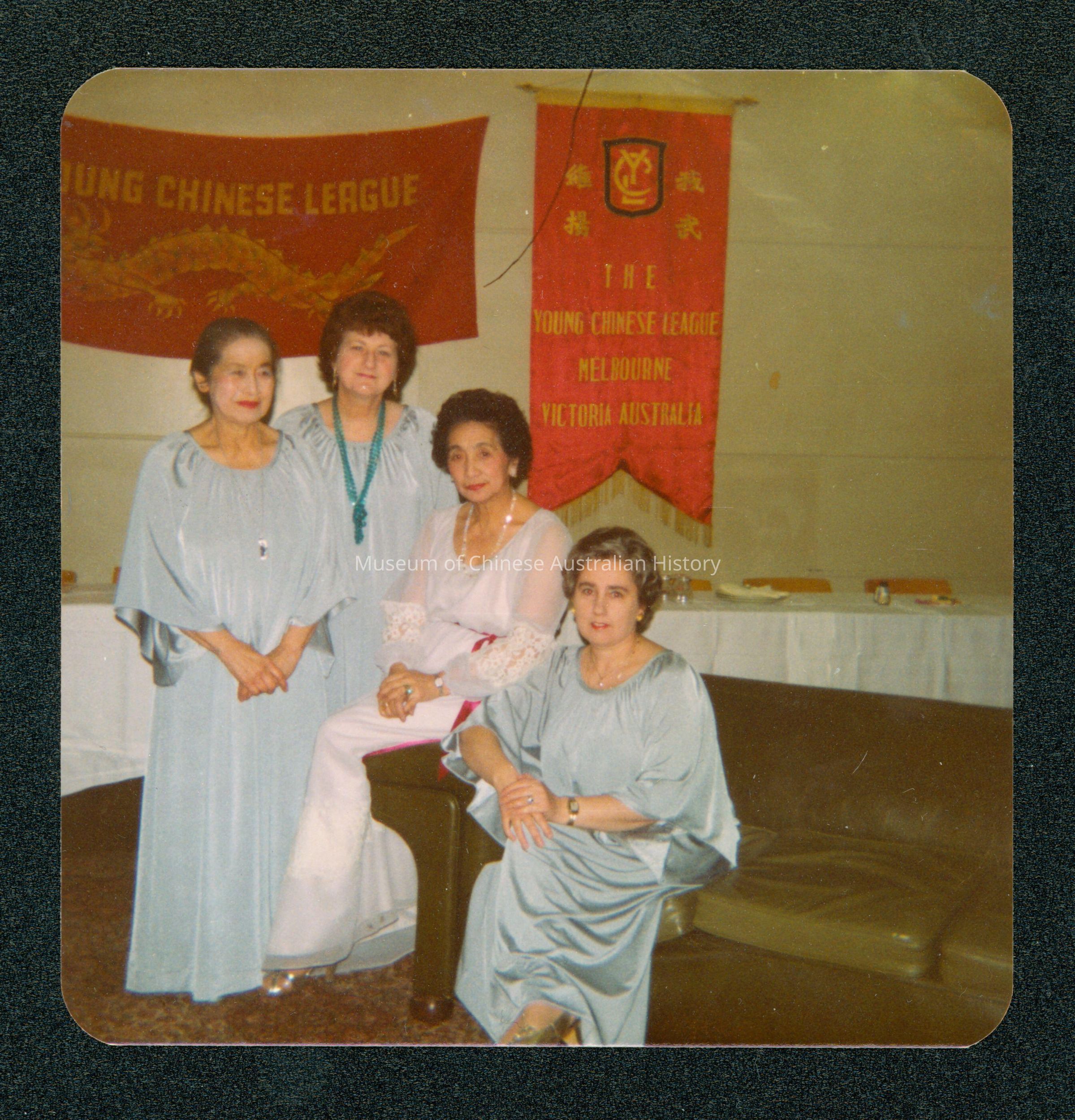 The Young Chinese League was established in 1932 as a non-political organisation aimed to bring people of Chinese descent together to meet and share social, cultural and sporting activities. They ran a debutante ball from their establishment through to the 1980's. Alma Quon's band played at these balls (and many other Chinese community functions). They also played regularly for the RSL, bowling and golf clubs, Masonic Lodges all over Melbourne. Alma's band was an all women's band (a fashion at the time it was established) and contained both Chinese and non-Chinese Australians (including I believe Jewish Australians). Members of the band in the 1930s included : Dawn Smith, Molly Worrall, Gladys Torrens, Alma Quon, Valma Frecker, Moya Brown, Lotte Rehn, Gay Funston and Lorna Quon. They played a mix of Western and modified Chinese-style music. The donor does not know when Rona was a member of the band but believes that it was in the late 1950s to early 1960s. At some stage she played double bass for the band.Acquisition