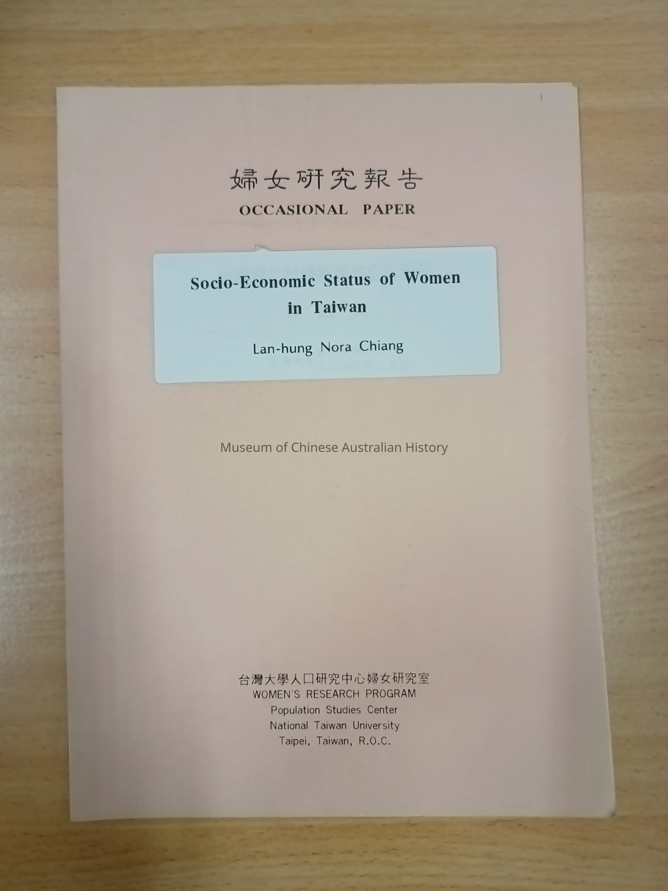 Series: Women's Research Program, Occasional Paper #7. Donated by Jane Lydon, November 2012.