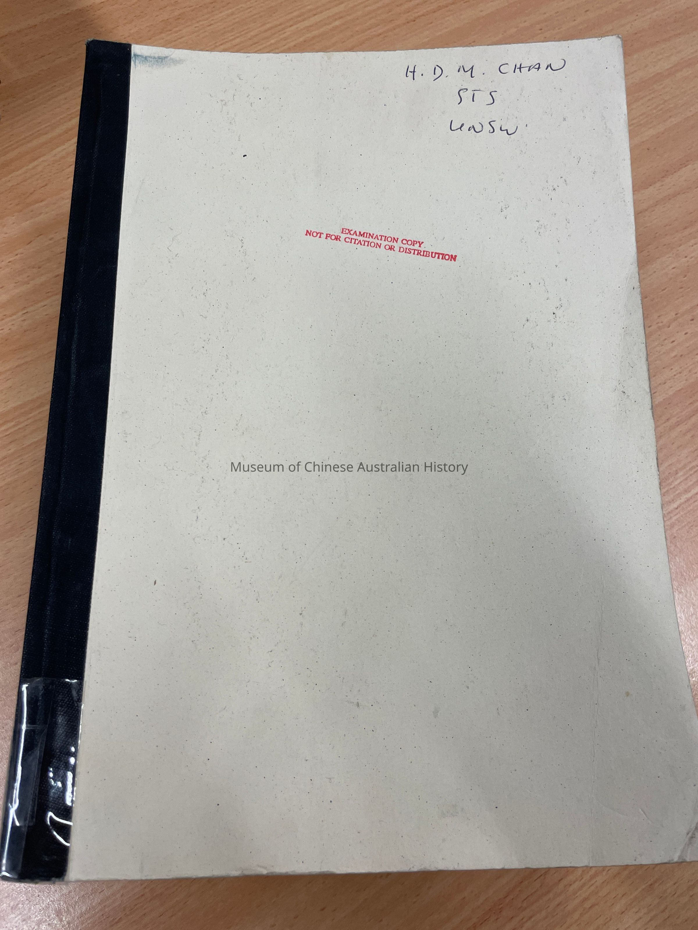 Note: Copy two is an examination copy - not for citation. From the estate of Professor Henry Chan, 30 October 2015.