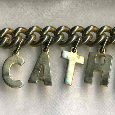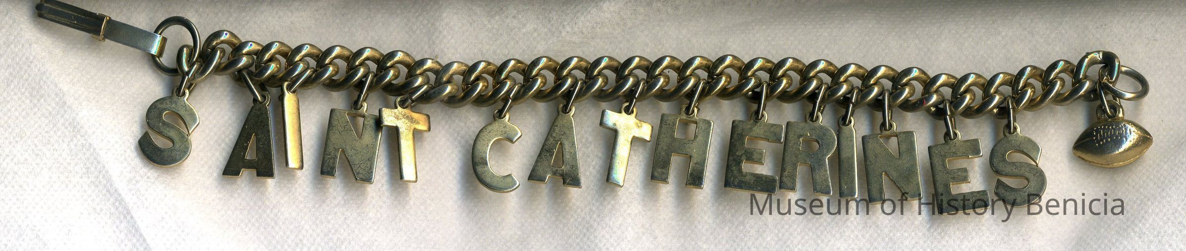 Bracelet - gold chain and letters "SAINT CATHERINES" and a small gold football 7" in length, letters are 1/2" high