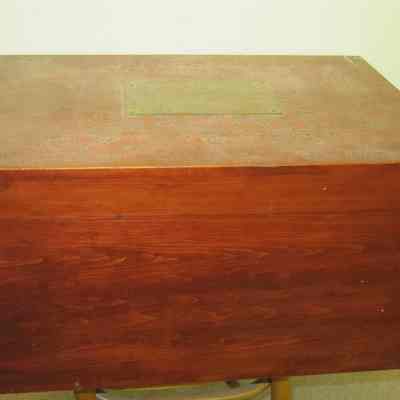 This is a wooden box stored in the attic of the Benicia City Council for many years. The box is 24" x 16" x 13". The box was inscribed: