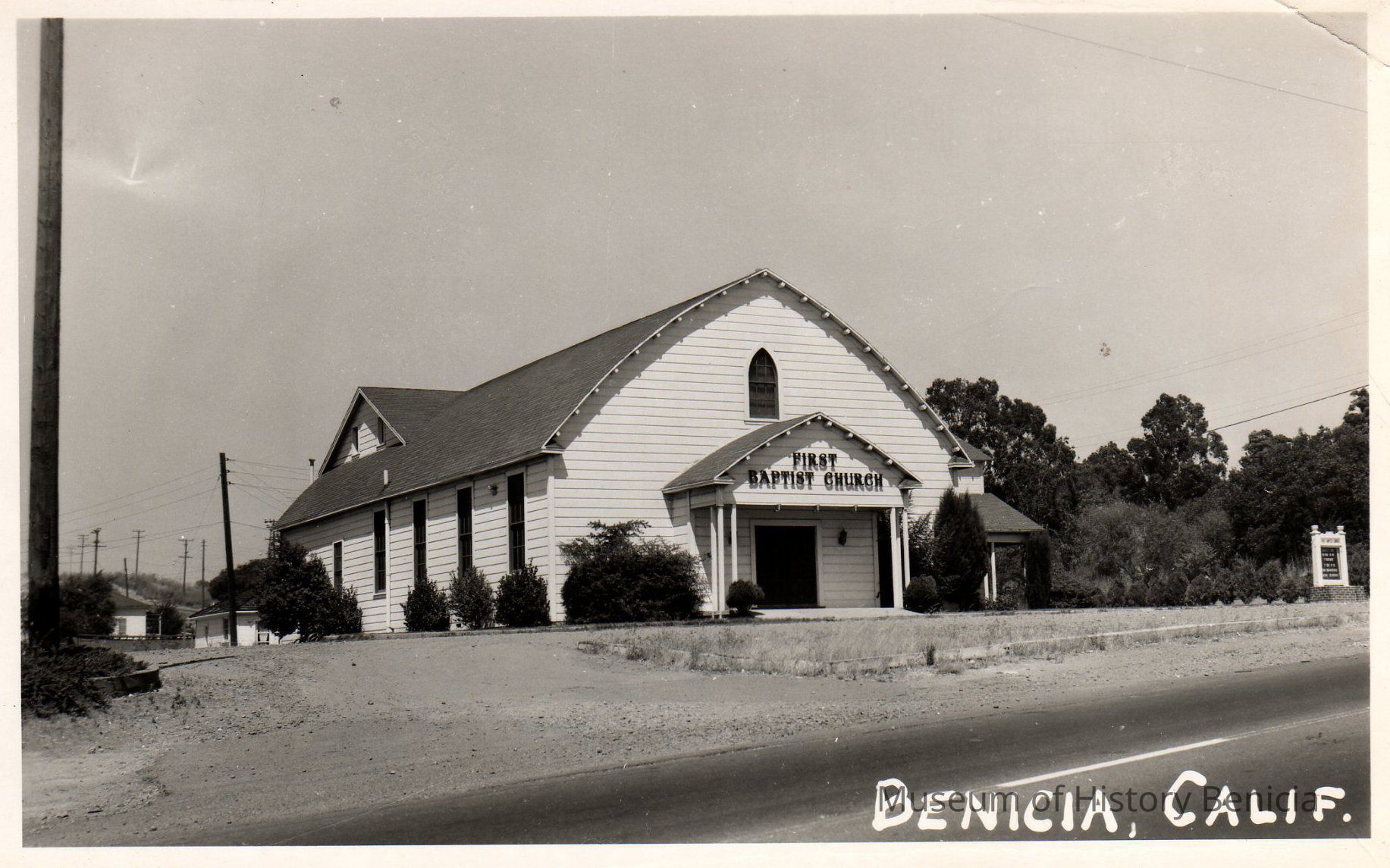 B/W image of the First Baptist Church when it was located at the NW corner of Military East and East 2nd Streets.