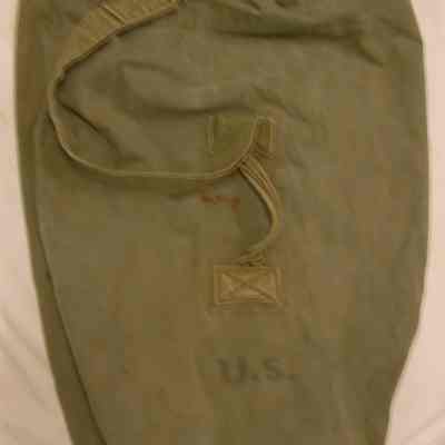 with handle and shoulder strap; four grommets and metal ring on top where shoulder strap attaches to close the bag;
