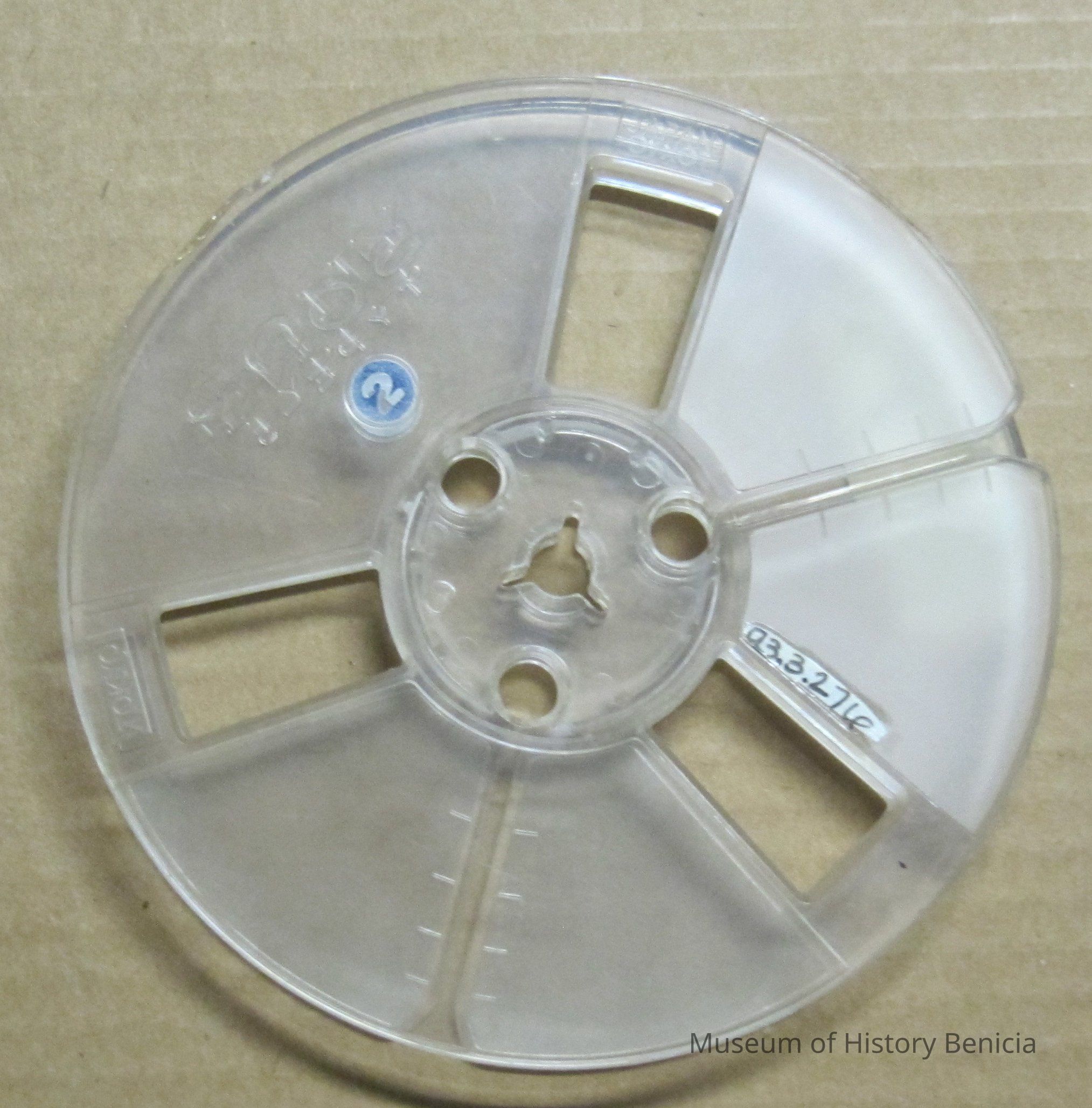 audiotape on a clear reel with "side no. 1" on one side and "side no. 2" on other side on masking tape and reel