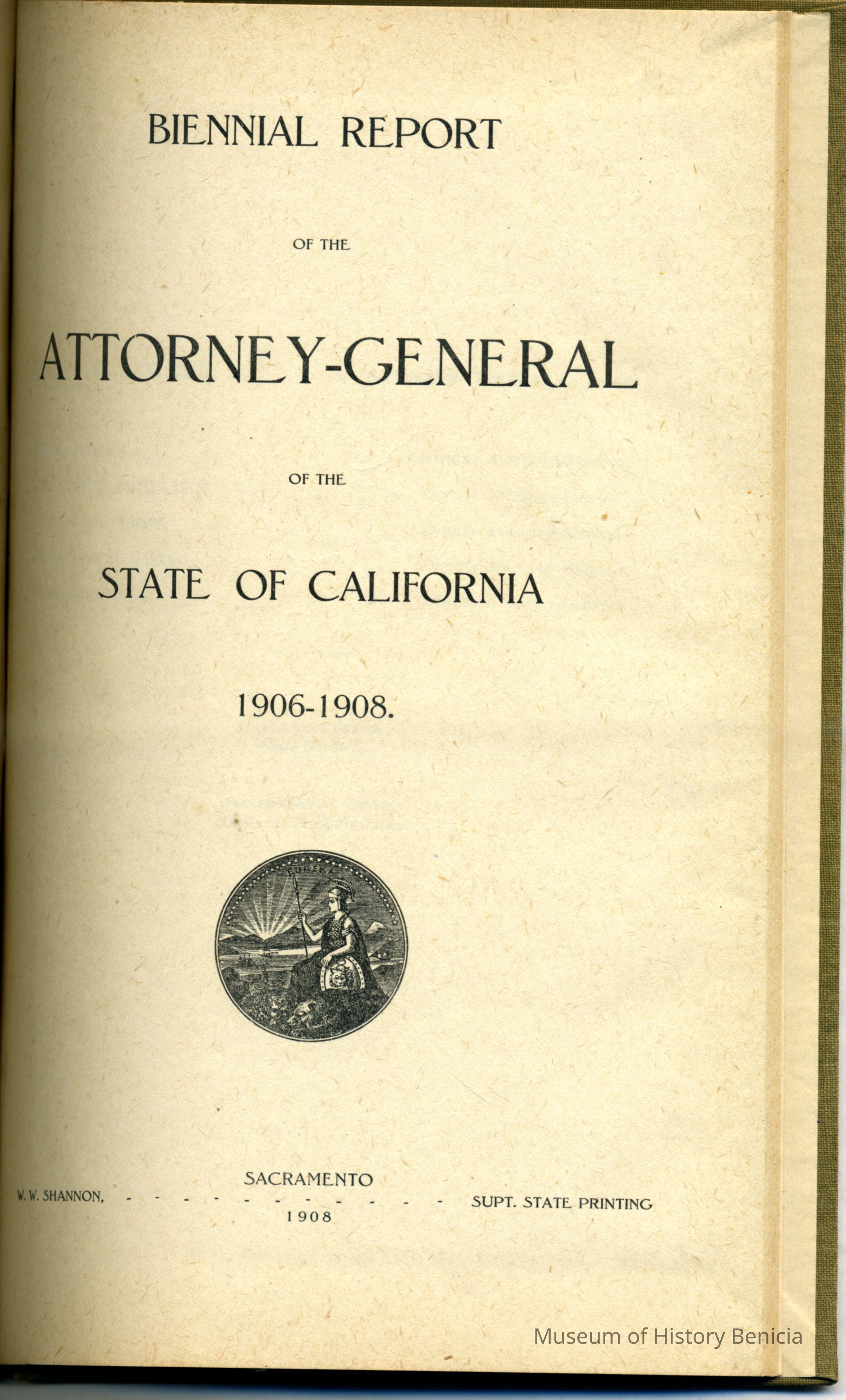 1910 Biennial Report of the Attorney General of CaliforniaEntry/Object ID