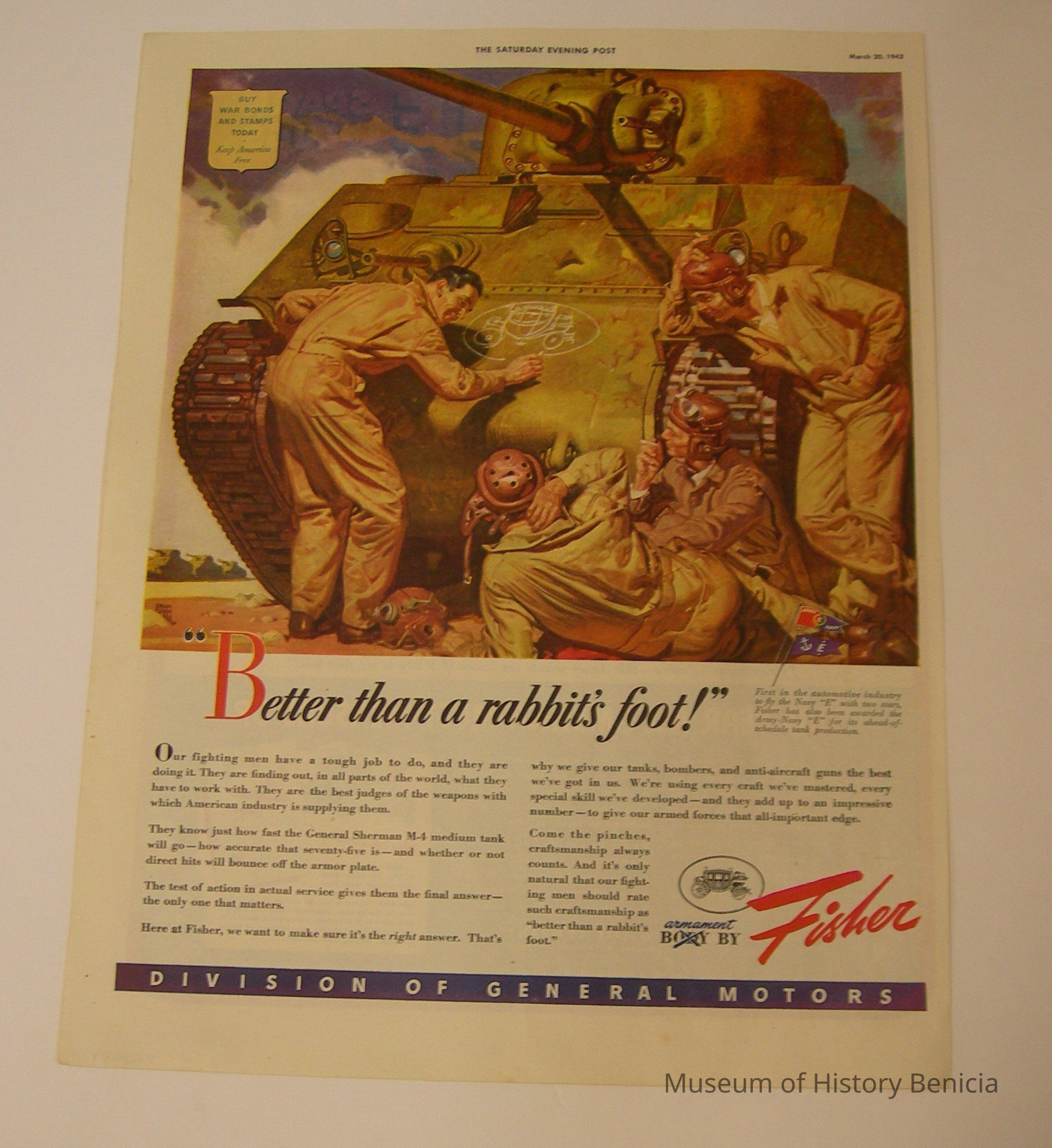 "Better than a Rabbit's Foot" refers to the "Body by Fisher" symbol on the side of the tank; Fisher built bodies for Chevrolet vehicles