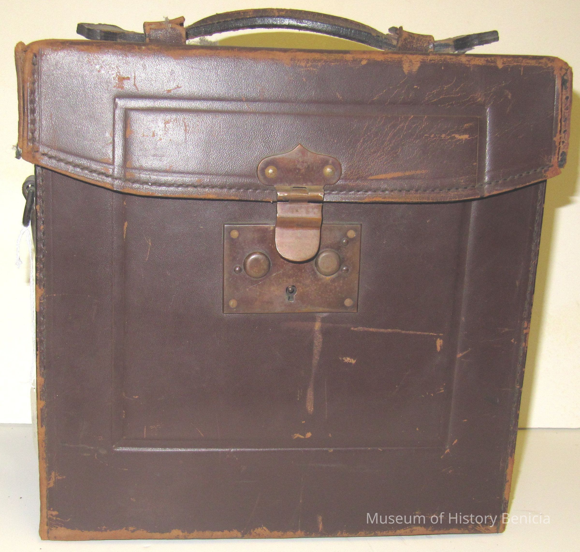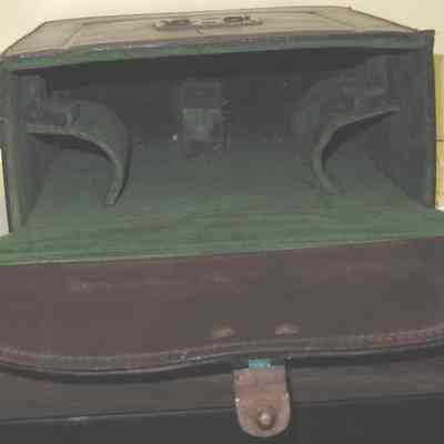 This is a leather case for Victor Cine film camera model 3. This is a 16 mm movie camera taking 100 foot spools. The case is 9.5" x 9.5" x 4.25". It has a green velor interior with preformed interior for this camera.