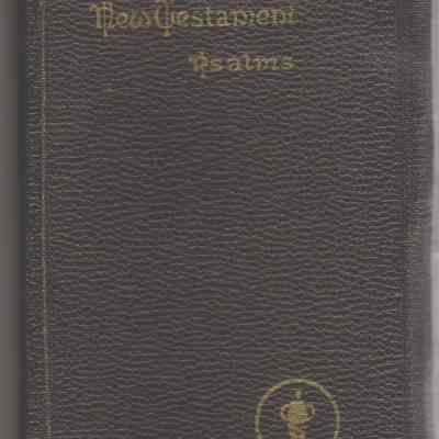 Book New Testament with Psalms in the back; pocket sized book given to soldiers in WWII letter on first page is dated January 25, 1941: To the Armed Forces signed by F.D. Roosevelt space for soldier's info inside front cover (this copy has no info written in) brownish, stiff cover "Made especially for THE GIDEONS by National Bible Press, Philadelphia National Edition copyright 1941