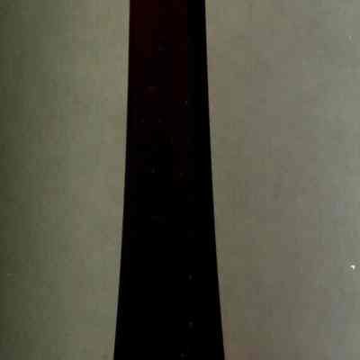 This is one of nine chandelier pendants either a teardrop or raindrop pendant. It may have been attached to a chandelier in a local school or church. They are in several different colors; clear, amber, blue and red. Each one is about 4.25" long and .75" at the large end. They all have a small glass bead attached to the small end where there is a brass wire.Collection