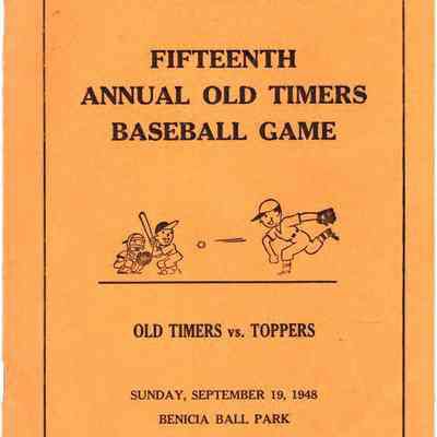 Booklett on 15th Annual Old Timers Baseball Game. The Old-Timers vs the Toppers. Official Souvenir Program 09/19/1948.