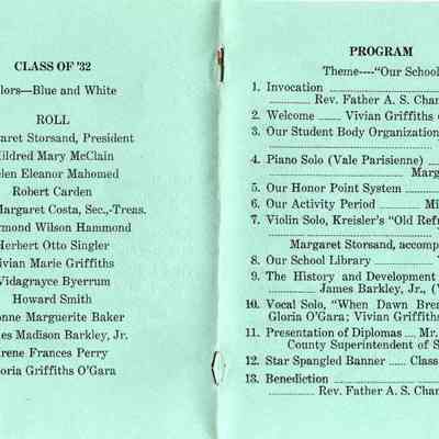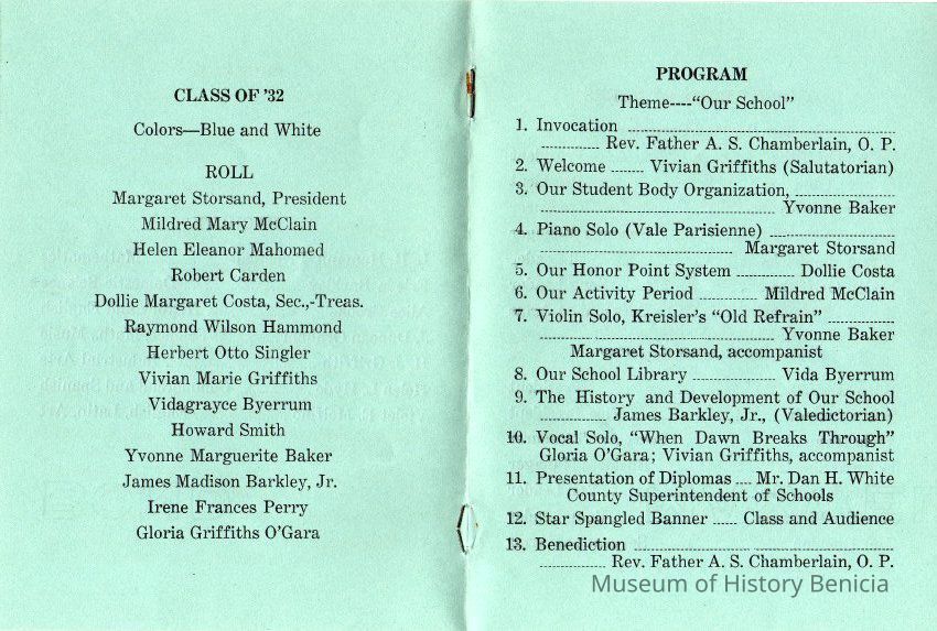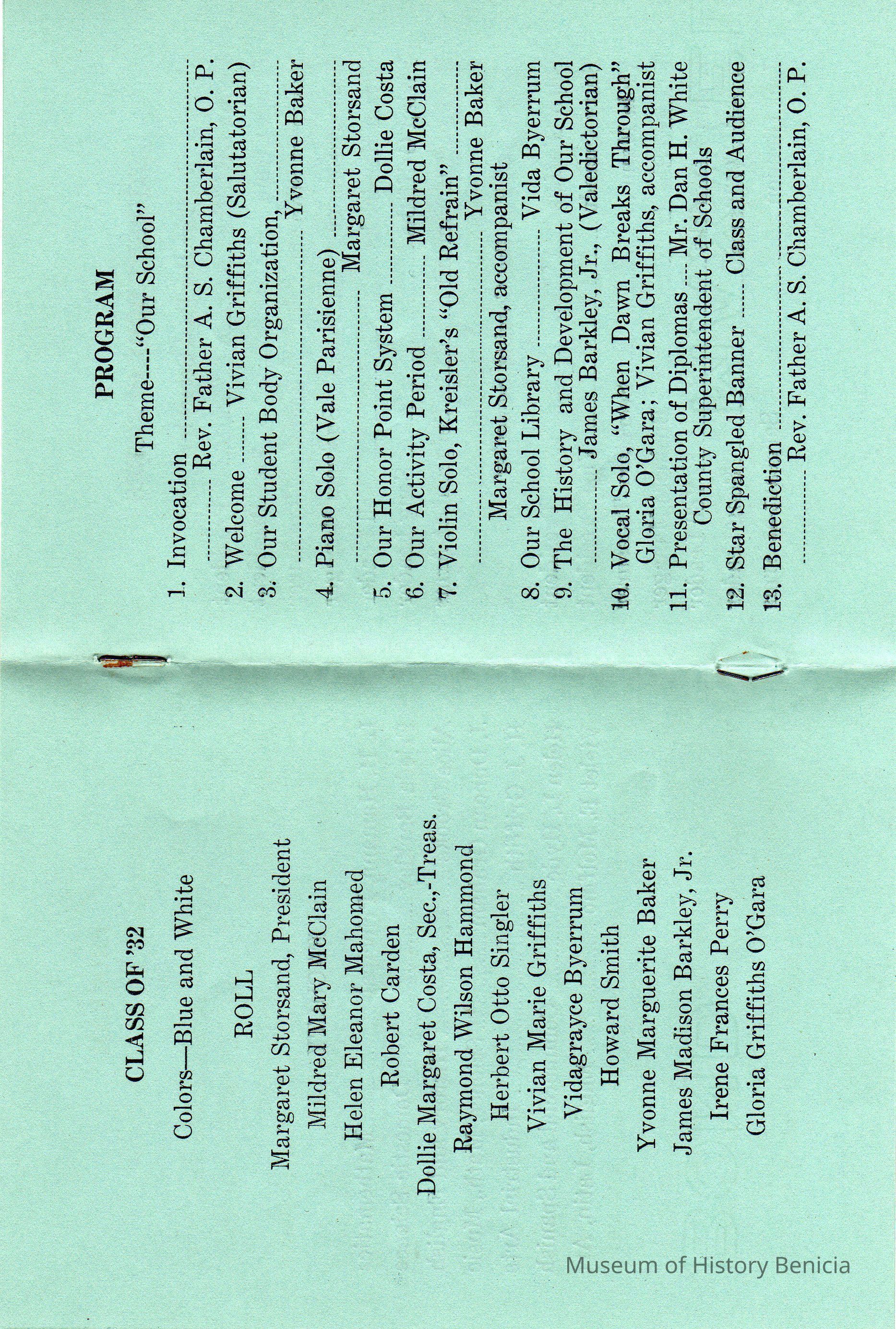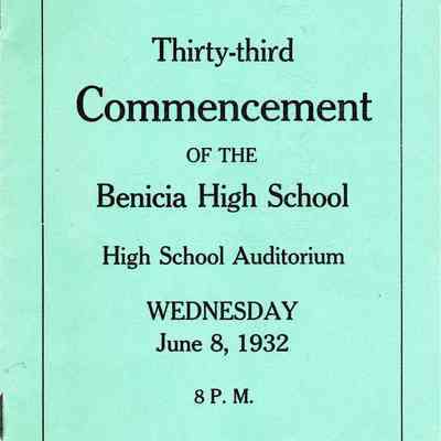 Mildred McClains Benicia High School Commencment announcement from 06/08/1932
