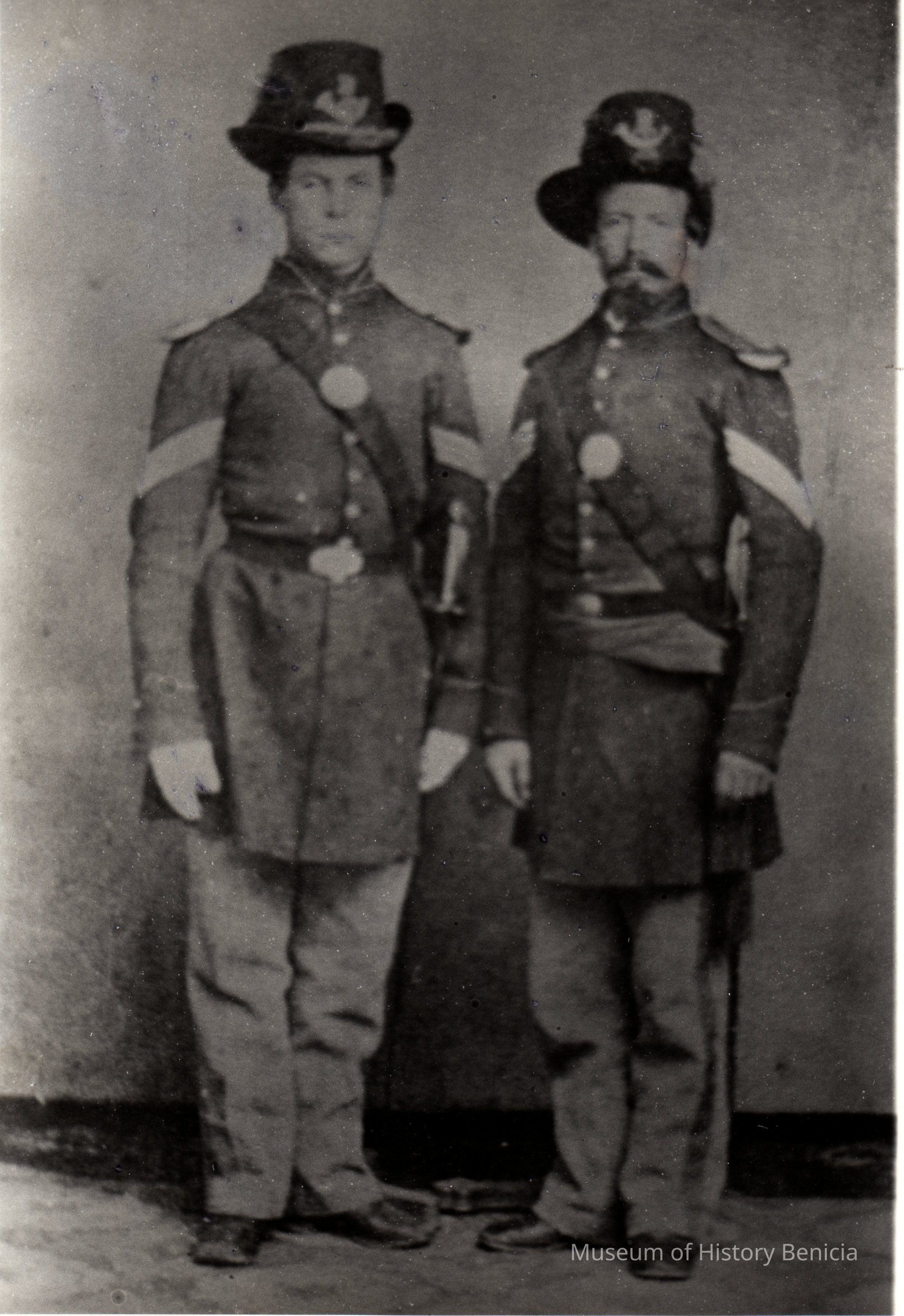B/W Photograph: Two soldiers of 3rd Calif. Volunteers, pre-Civil War. This is a copy of the print on display in the museum.