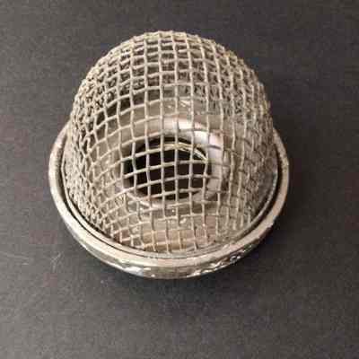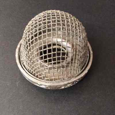Metal Bracket with cage cover - wire mesh. Looks like a cover for a lightbulb