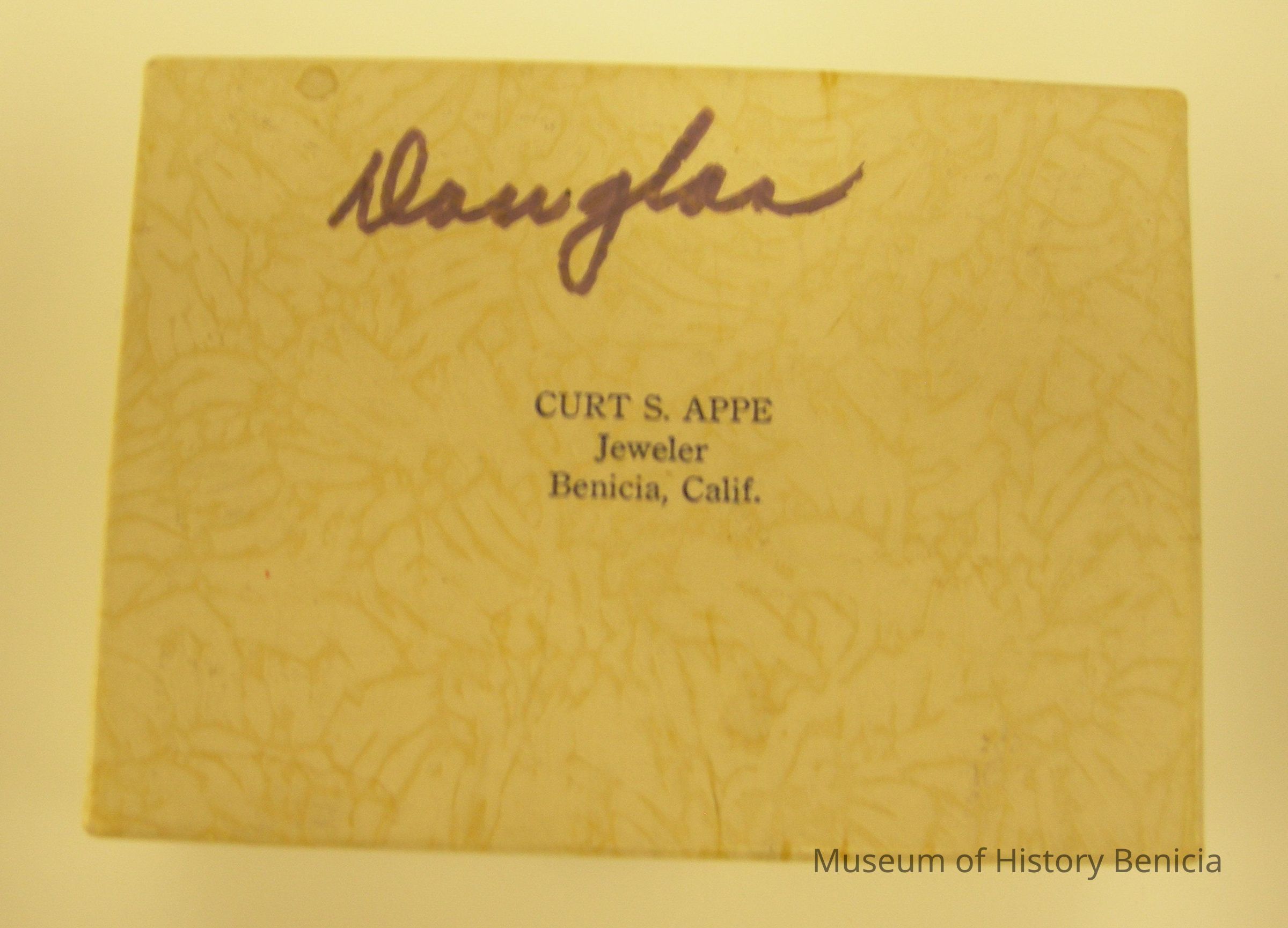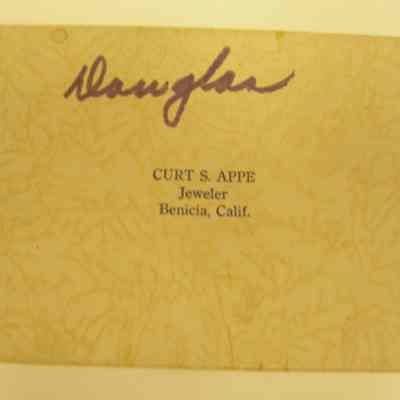 cardboard gift box with "CURT S. APPE Jeweler Benicia, Calif." on lid