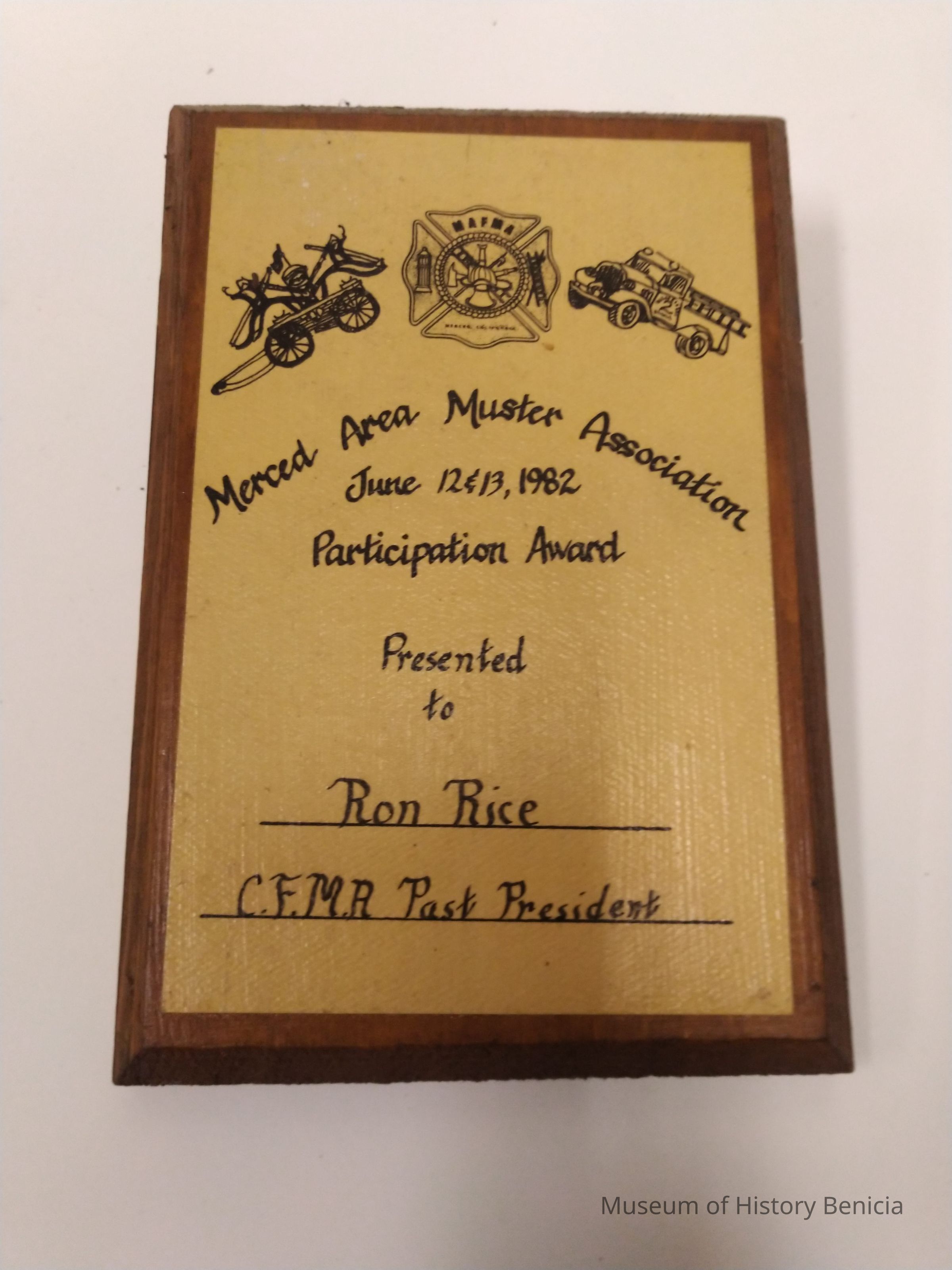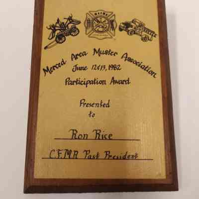 Merced Area Muster Association June 12 & 13, 1982 Participation Award Presented to Ron Rice C.F.M.A. Past President