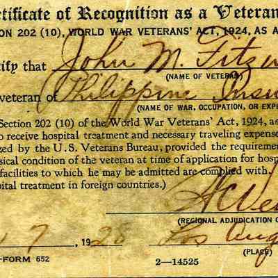 for John M. Fitzwater, veteran of the Philippine Insurrection