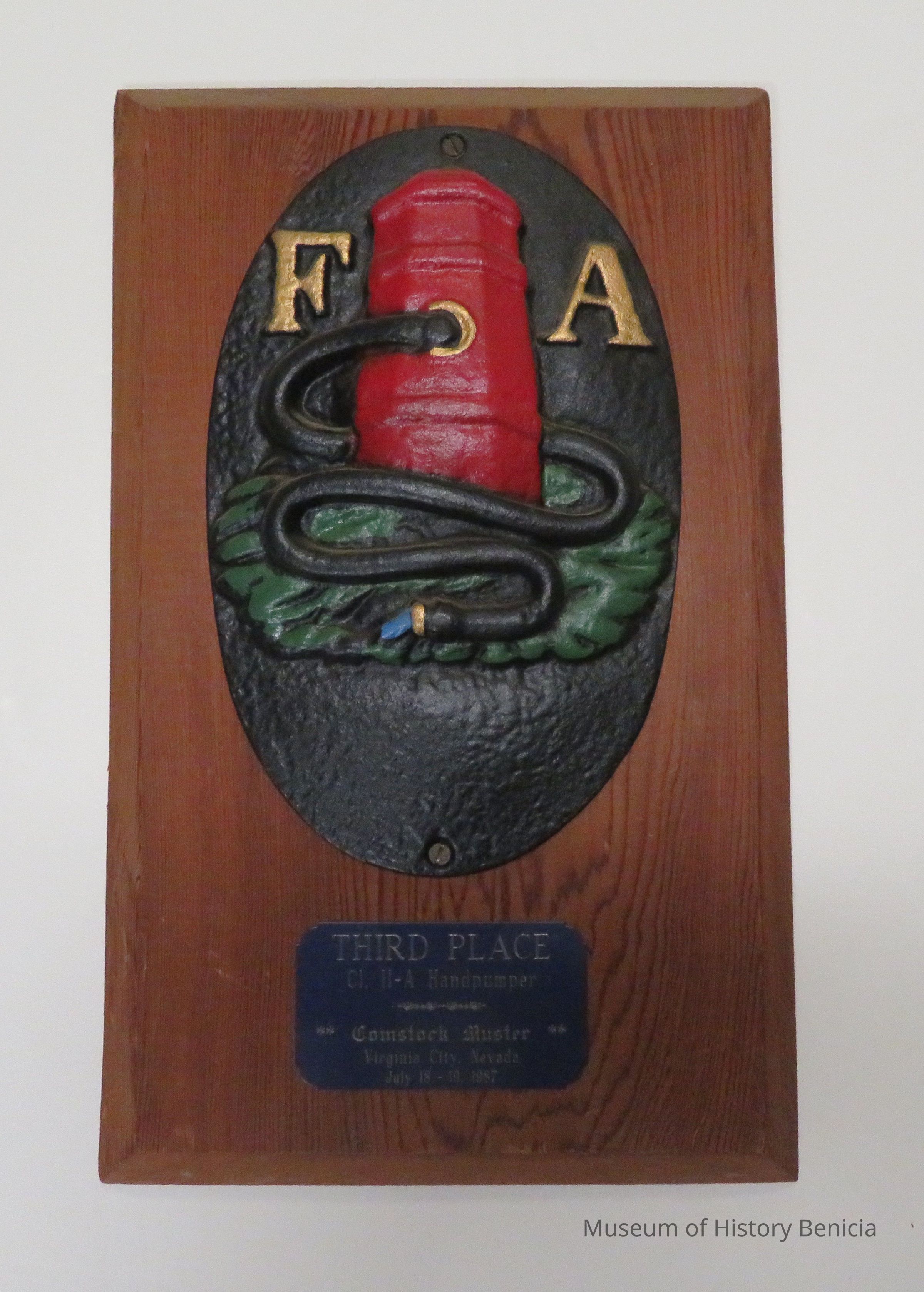 On plaque: "Third Place-Cl. II-A Handpumper"