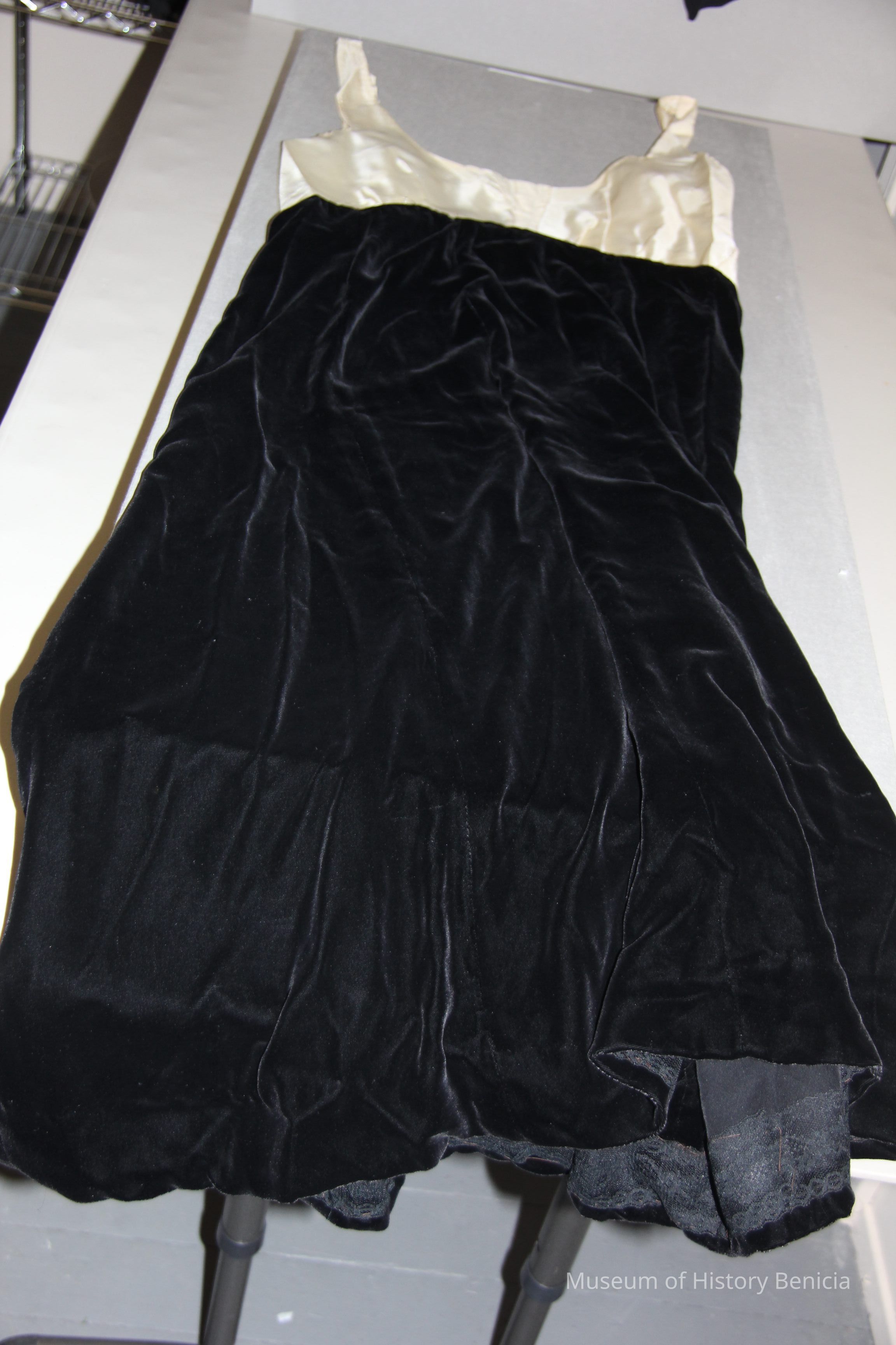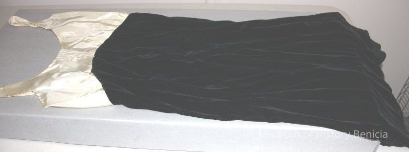 Black velvet dress with white bodice.
