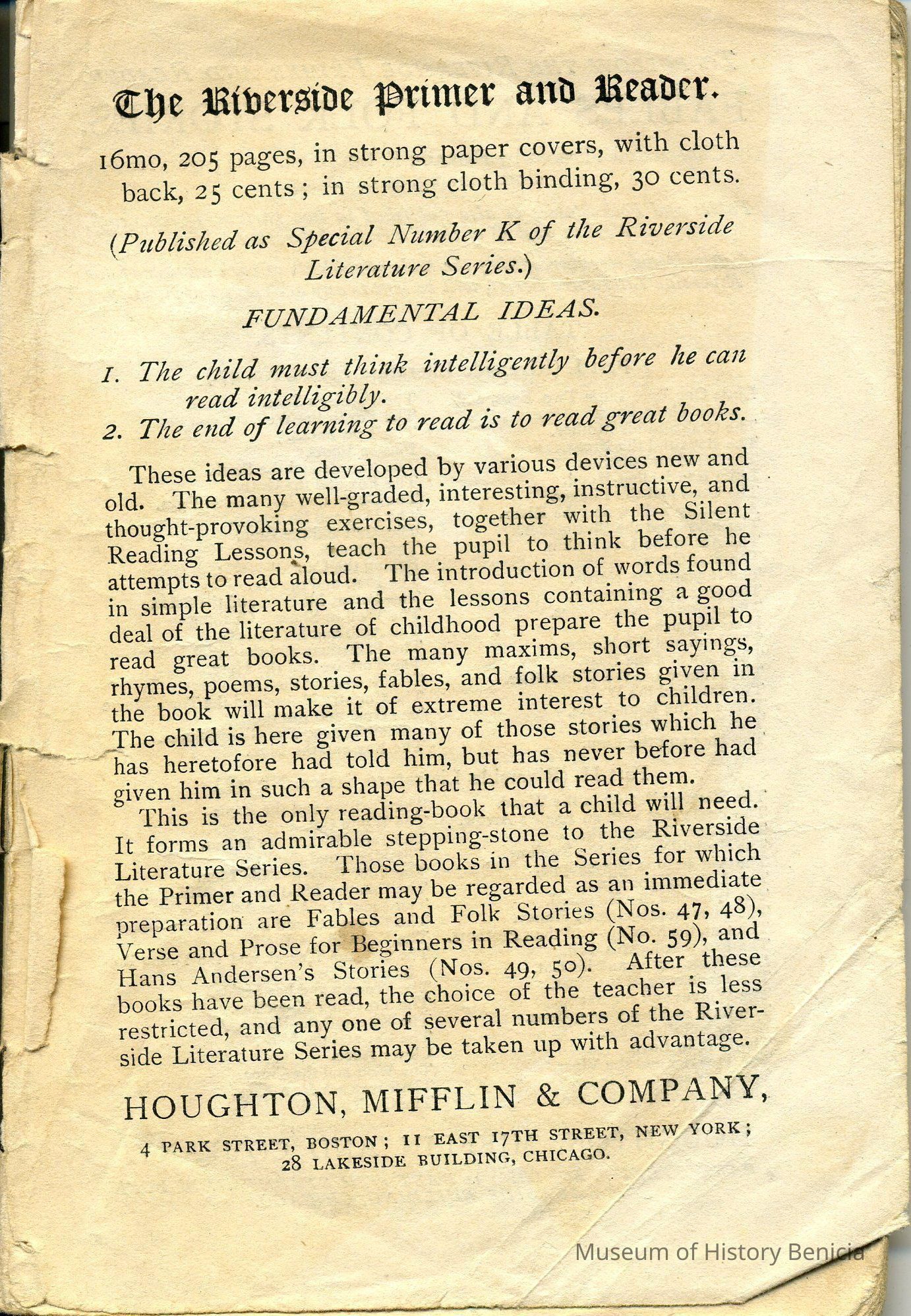 oval stamp in purple ink near back: Department of Public Instruction / State of California / Benicia District Library / Solano CountyCollection