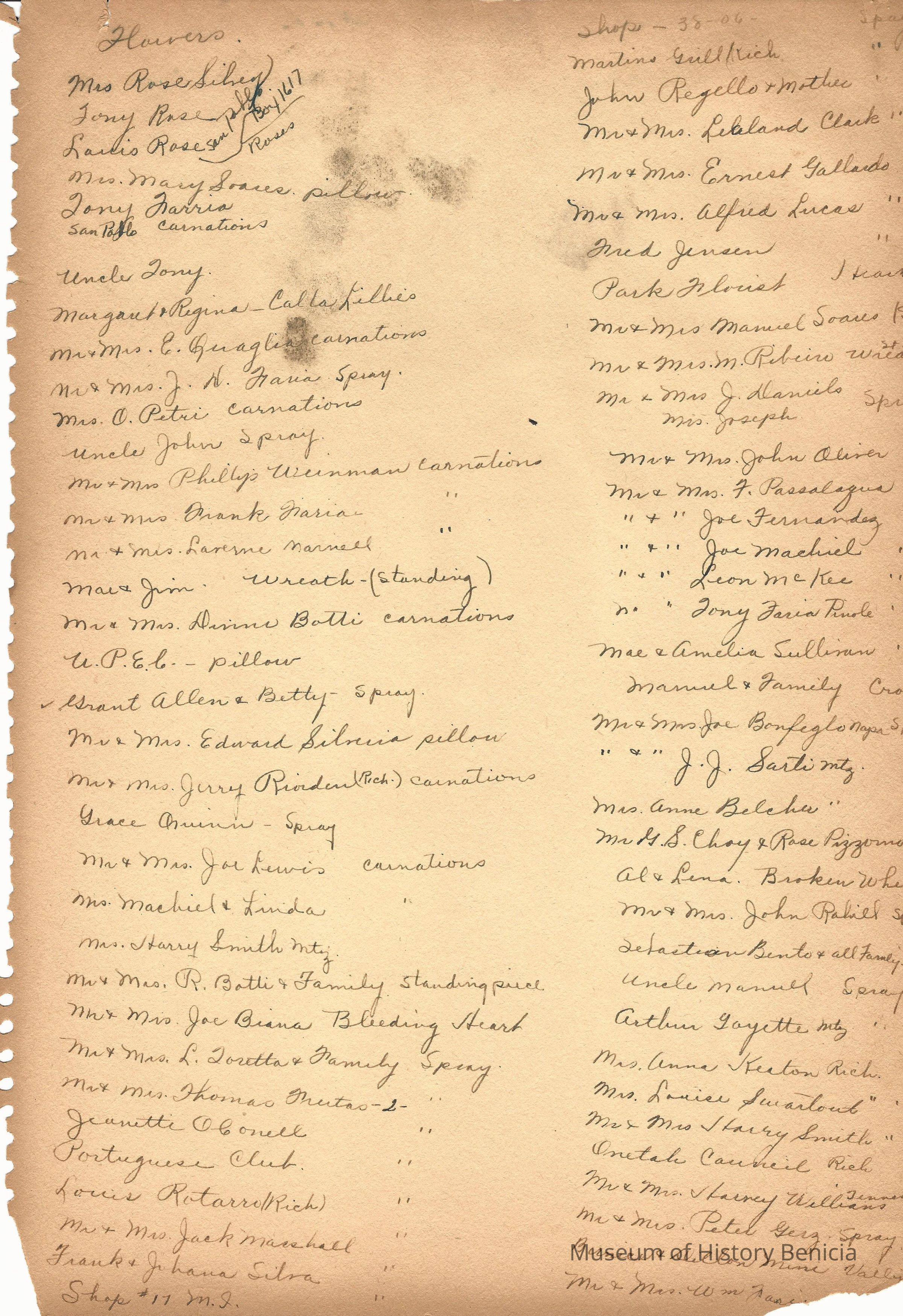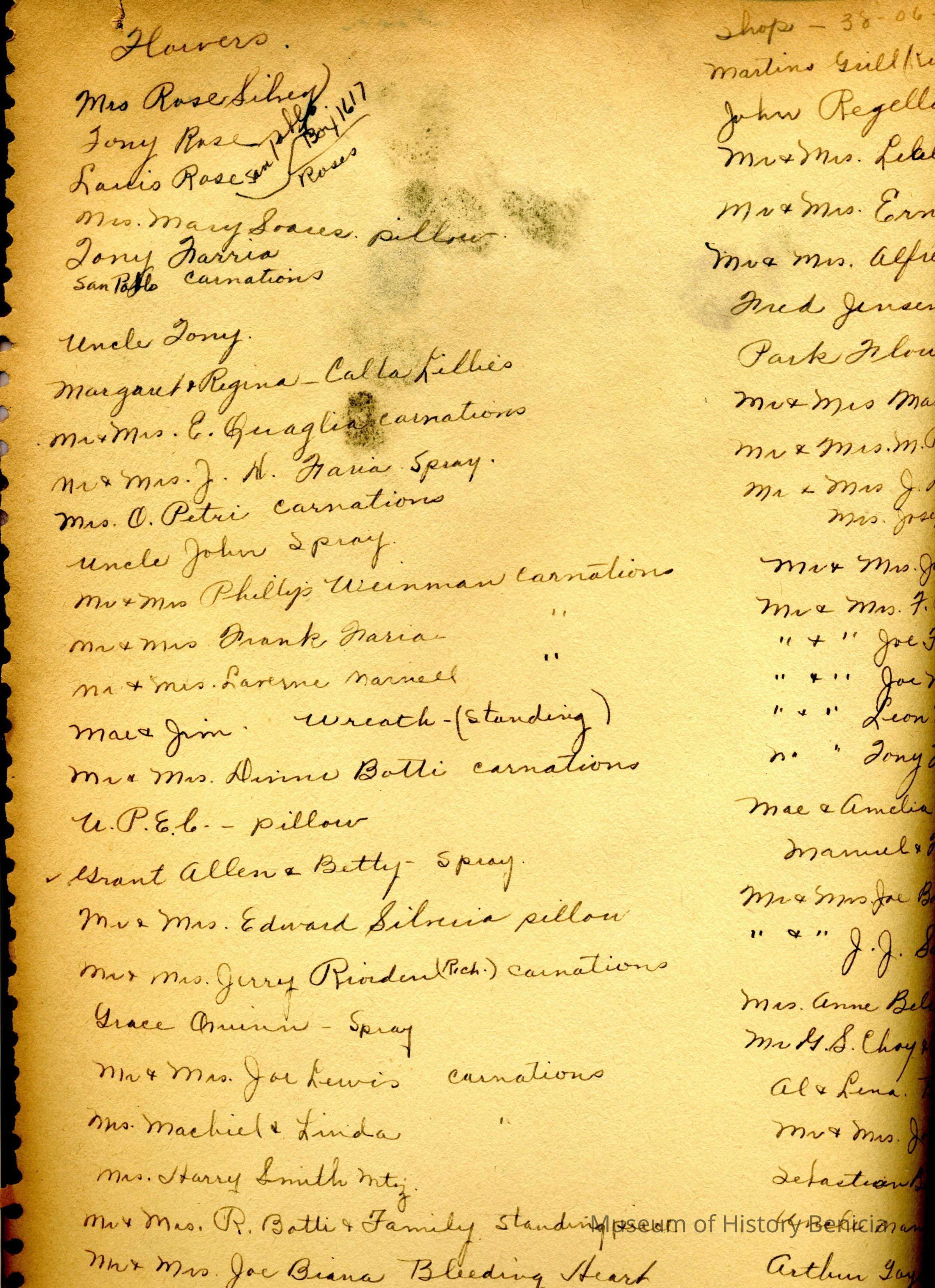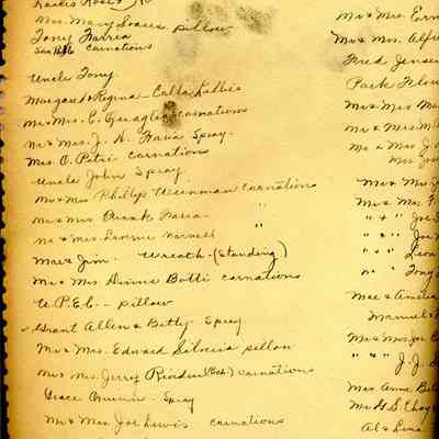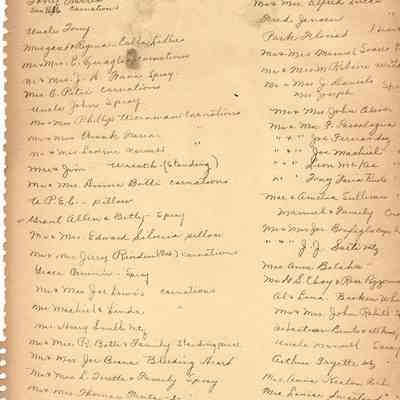 At the back of the scrapbook is a list of people who sent sympathy cards and flower arrangements. The book must have been used for a funeral at some time.