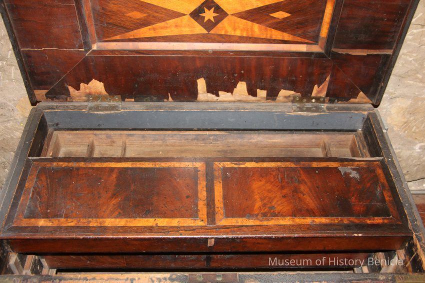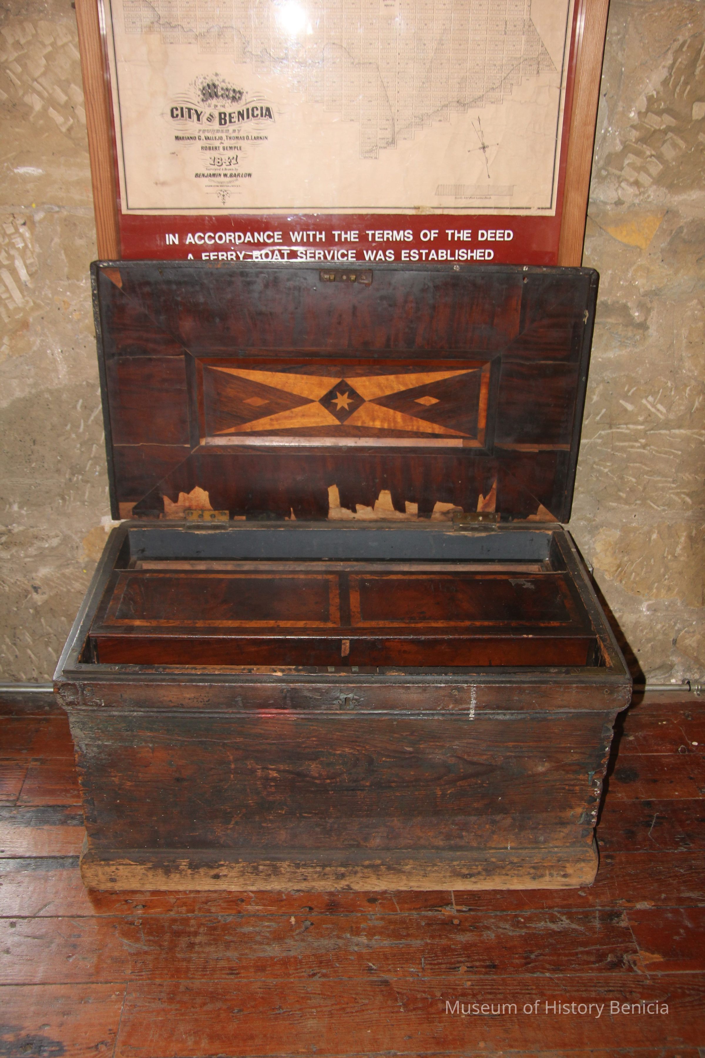 Originally the chest was the property of Horatio B. Hawkins, a carpenter at Pacific Mail Steamship Company in Benicia.