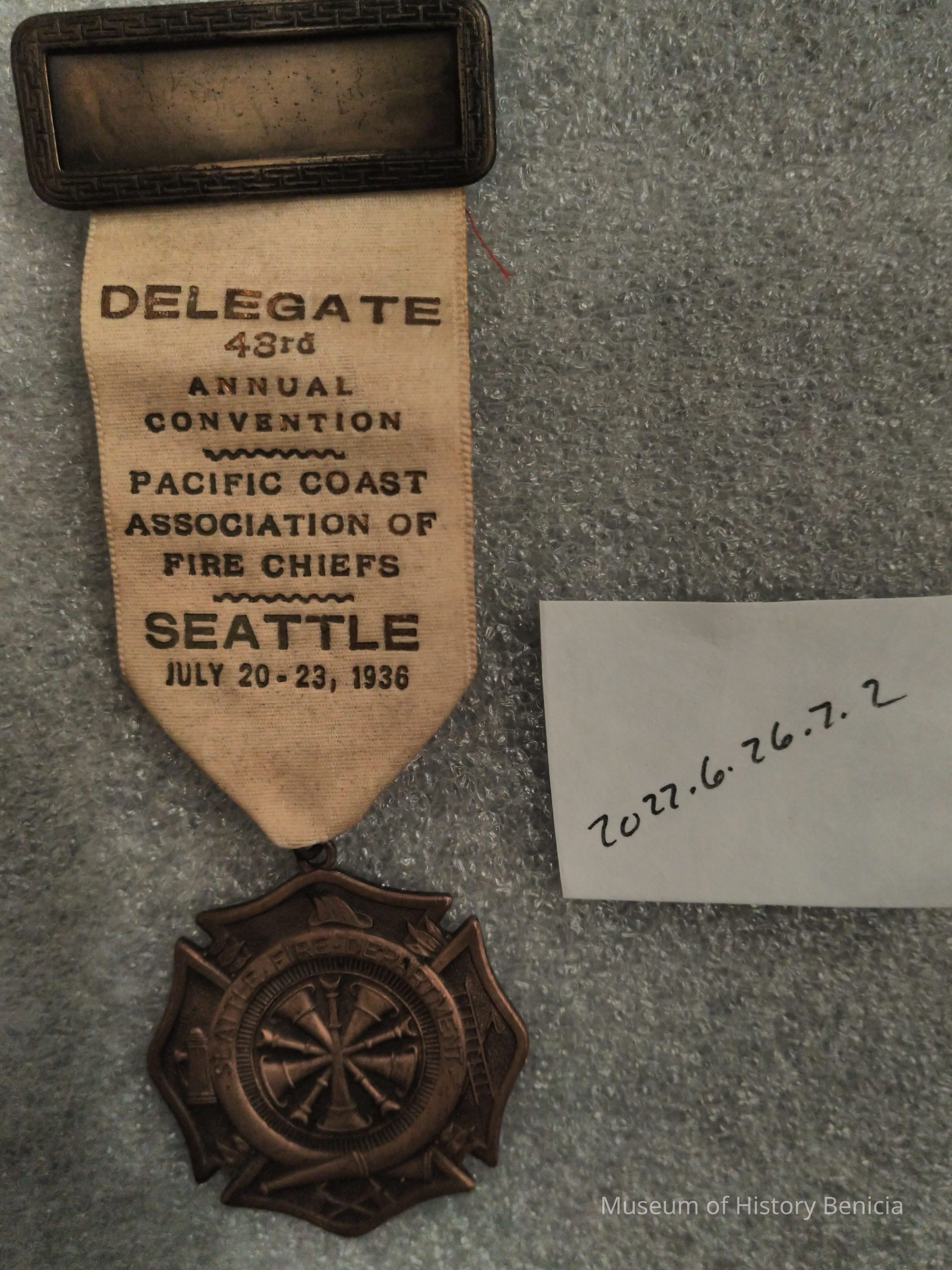 Delegate 43rd Annual Convention - Pacific Coast Association of Fire Chiefs - Seattle - July 20-23, 1936