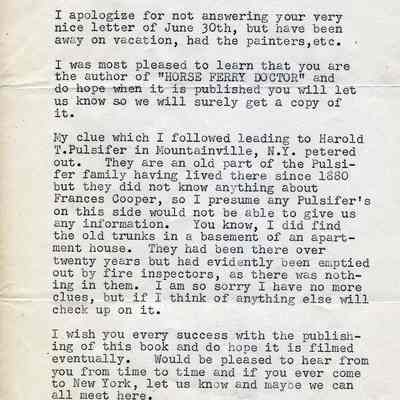 Letter to O. J. Wohlgemuth, Walnut Creek from Marie Pulsifer, Riverdale, New York, informing that she she did not have some specified information that was requested.