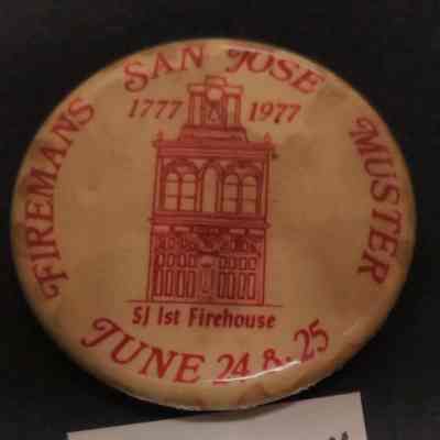 Red and White Fire Muster Pin - San Jose Firemans Muster - 1777-1977 - SJ 1st Firehouse - June 24 & 25