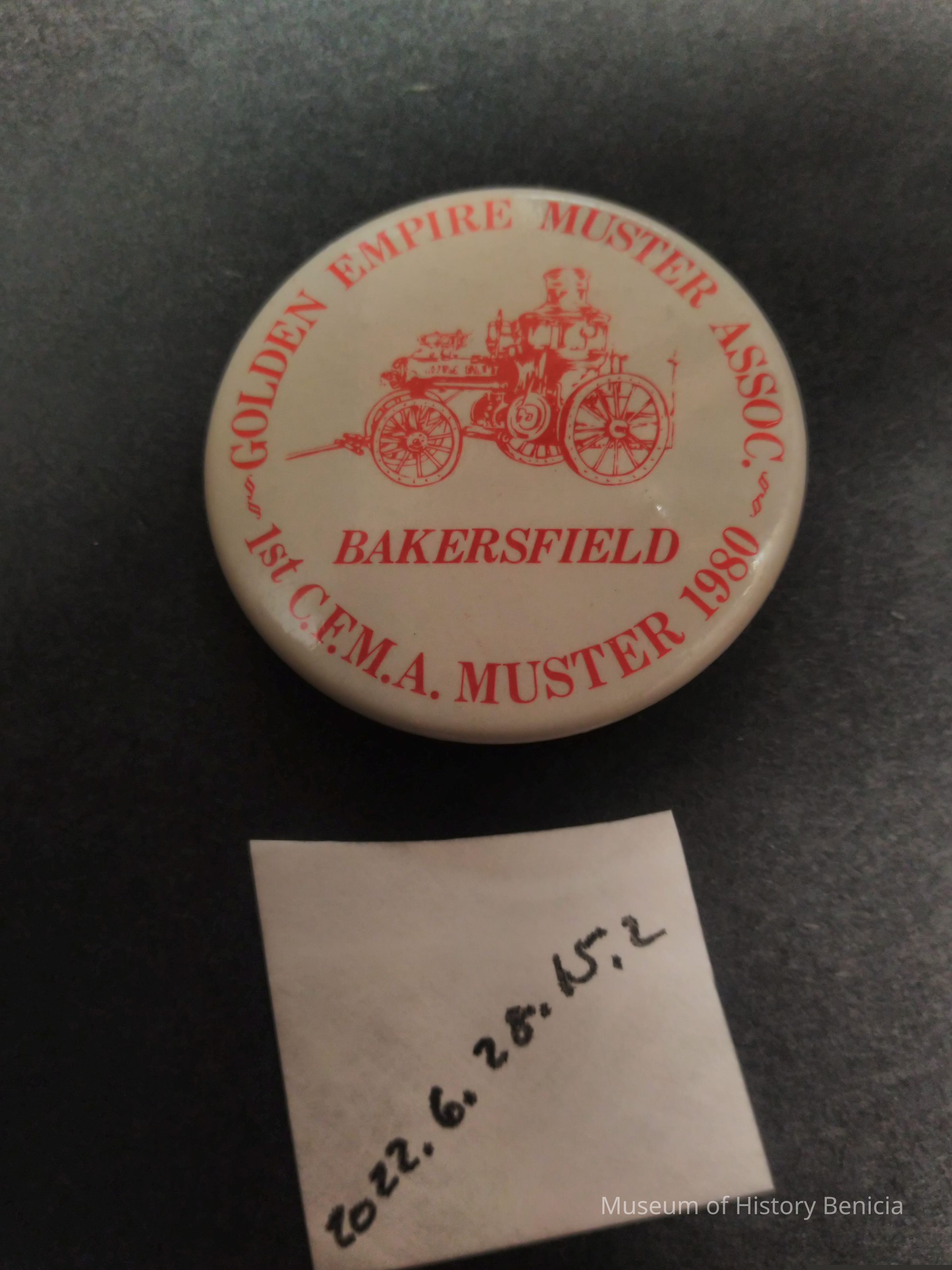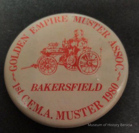 Red adn White Fire Muster Pin - Golden Empire Muster Bakersfield - 1st C.F.M.A Muster 1980