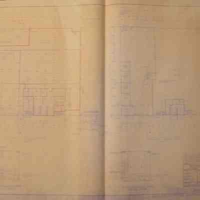 This drawing has changes to buiding plans inred ink and pencil notations marking new doors and walls.