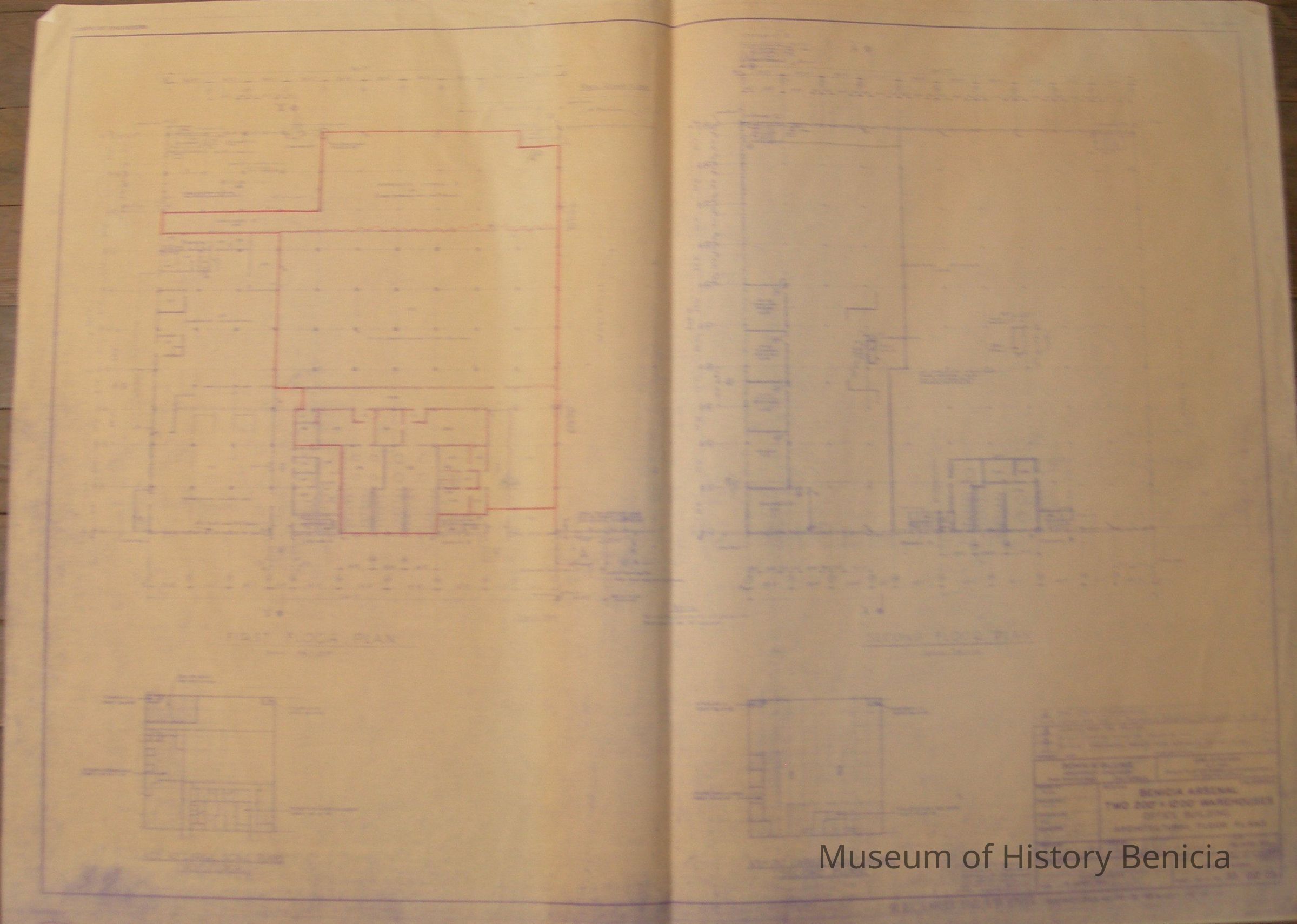 Blueprint: Benicia Arsenal Two 200' x 1200' Warehouses Office Buildings. Architectural Floor Plans