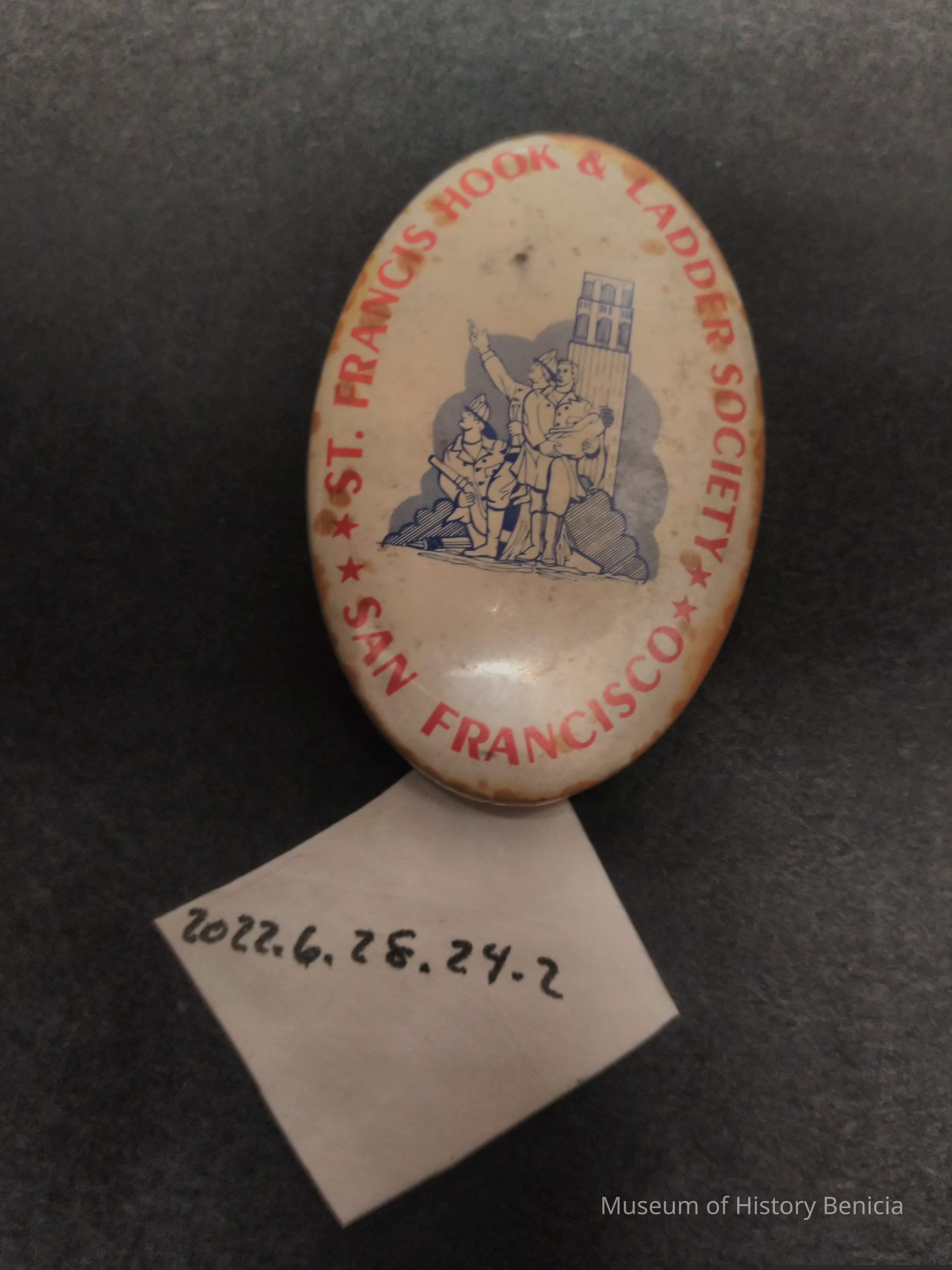 Red, White, and Blue St. Francis Hook and Ladder Society San Francisco Commemorative Pin