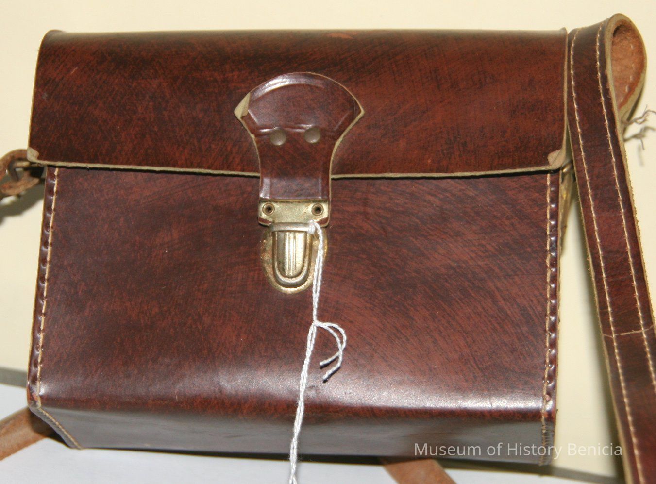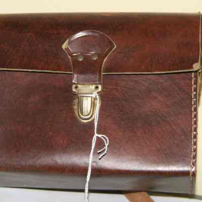 Brown leather camera case with strap